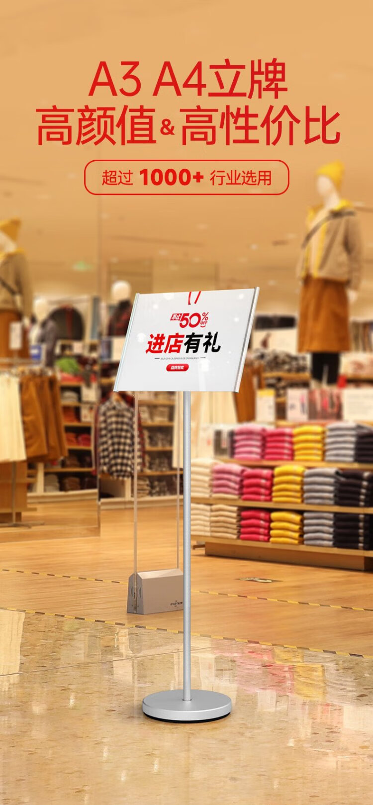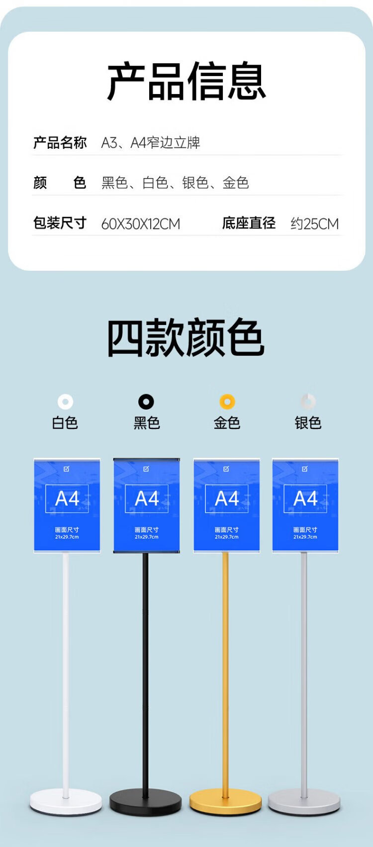 Love display narrow edge sign A4 vertical sign guide sign vertical display stand shopping mall hospital floor notice billboard guide sign A4 black universal horizontal and vertical * including base plate + panel