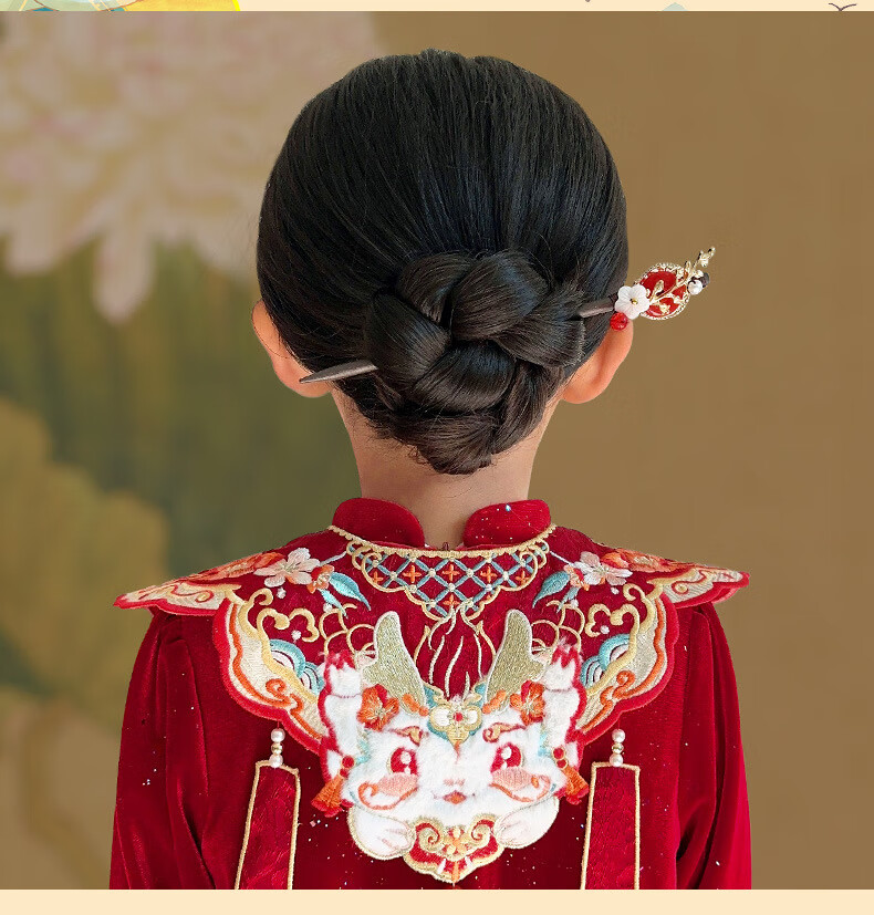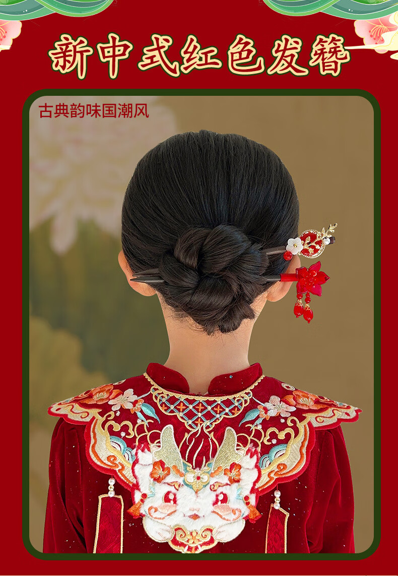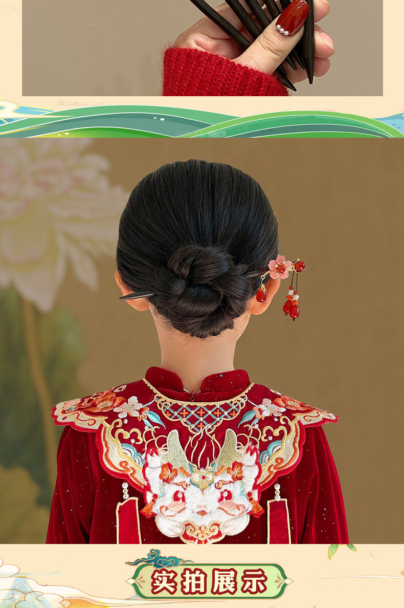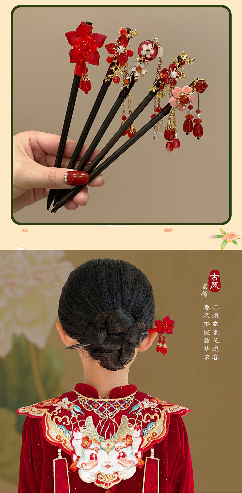 Qianla Children's Ancient Style Chinese-style Wooden Hairpin Girls' Walking Tassel Pendant Hair Accessories Red New Year's Eve Hair Accessories Liu Hanyan A22-308