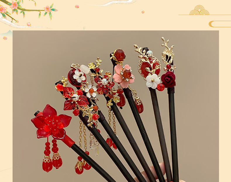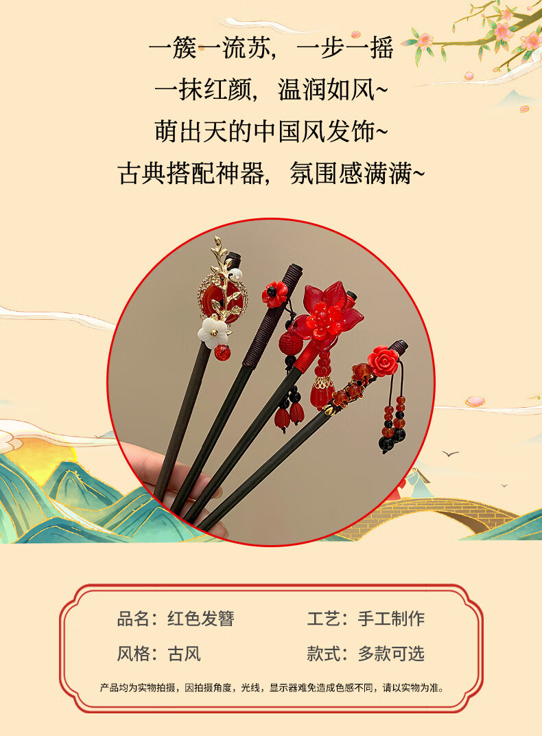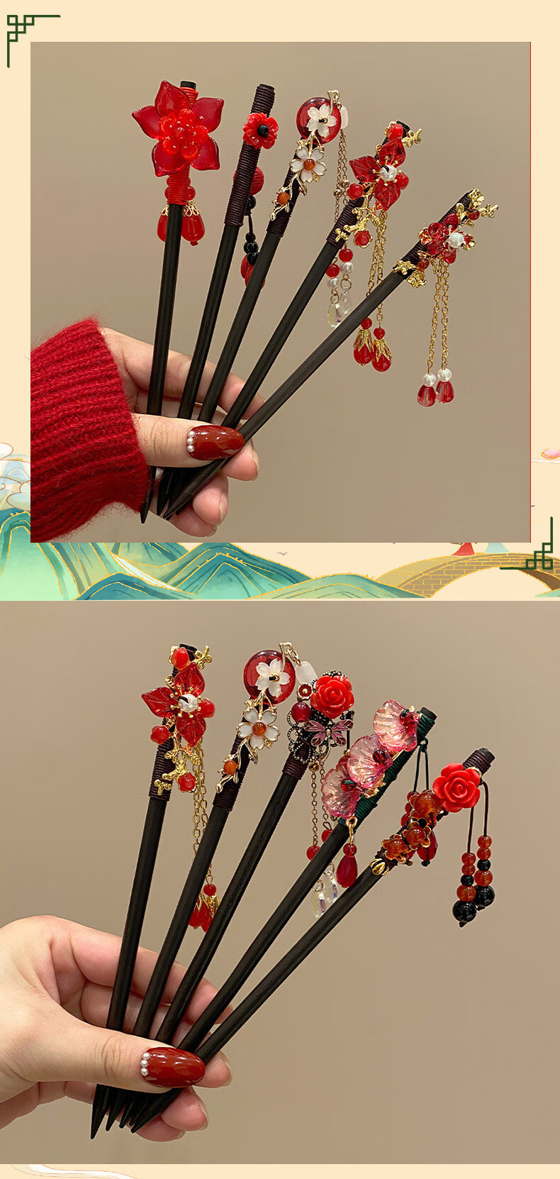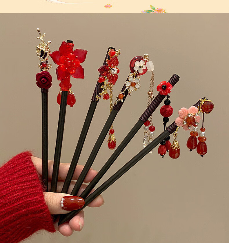Qianla Children's Ancient Style Chinese-style Wooden Hairpin Girls' Walking Tassel Pendant Hair Accessories Red New Year's Eve Hair Accessories Liu Hanyan A22-308