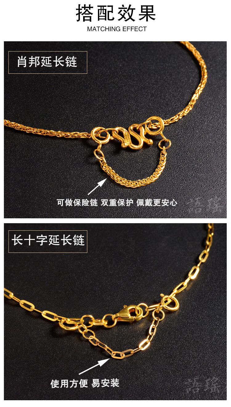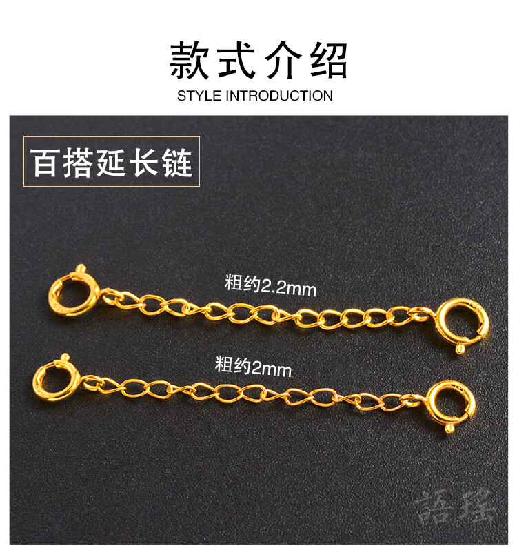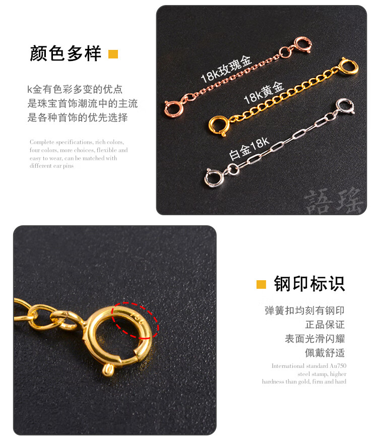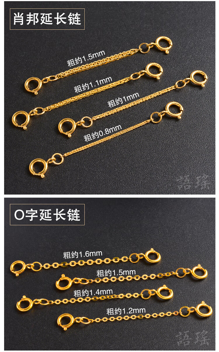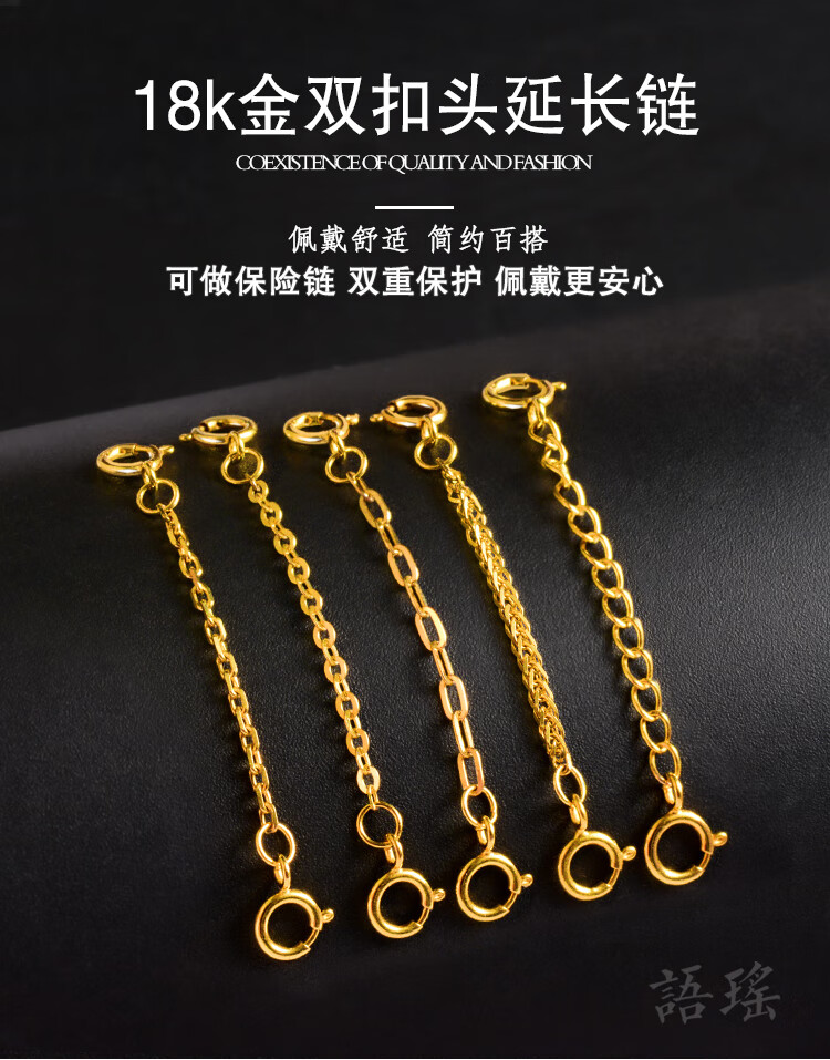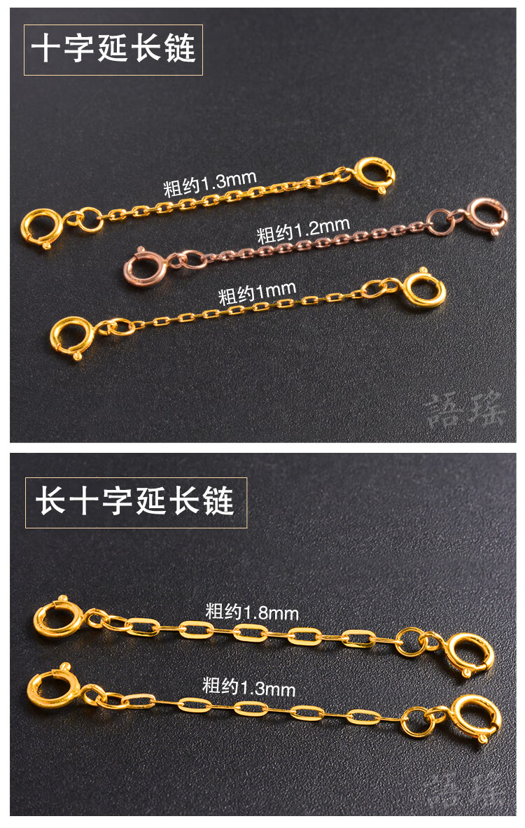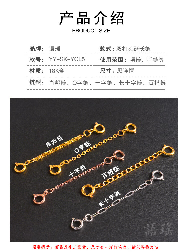 Yuyao double buckle head 18k gold extended chain pearl necklace bracelet extended color gold accessories anti-fall artifact rose gold 4.1 cm - 18k gold (double buckle) Chopard chain / about 1.5mm thick