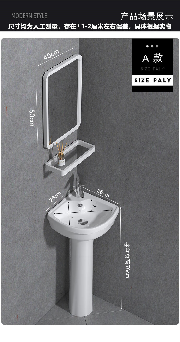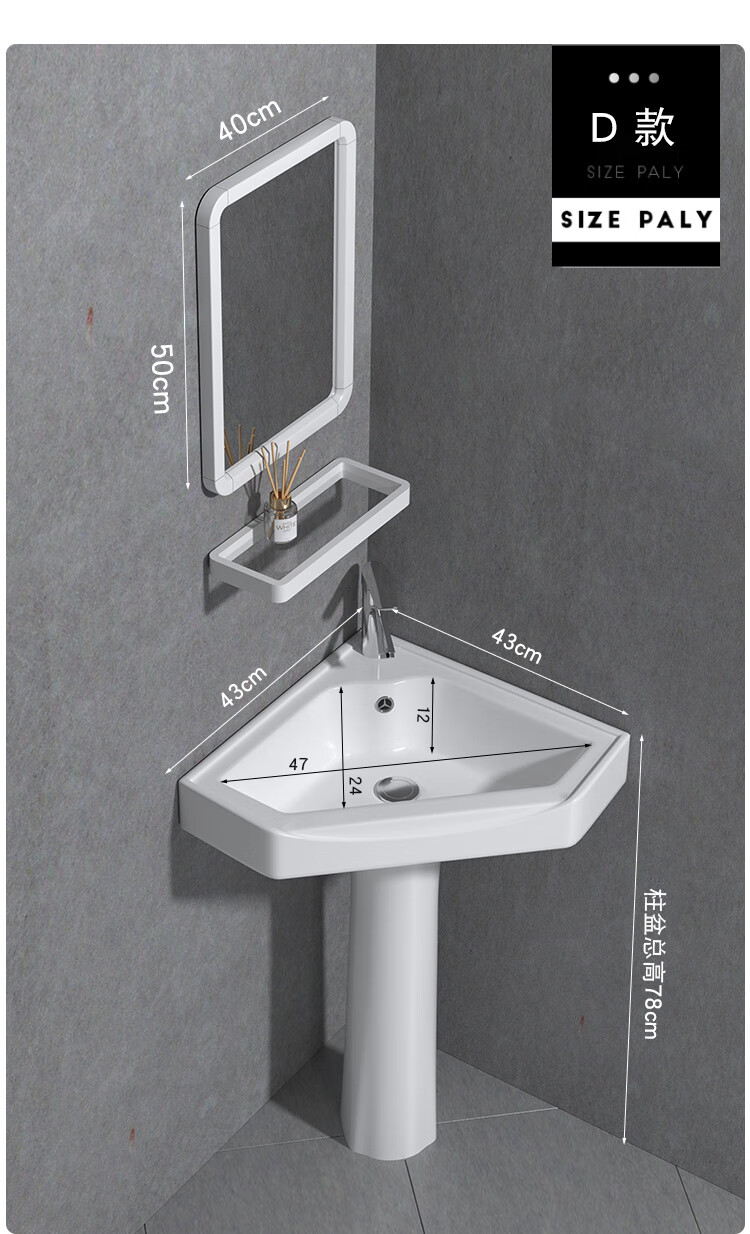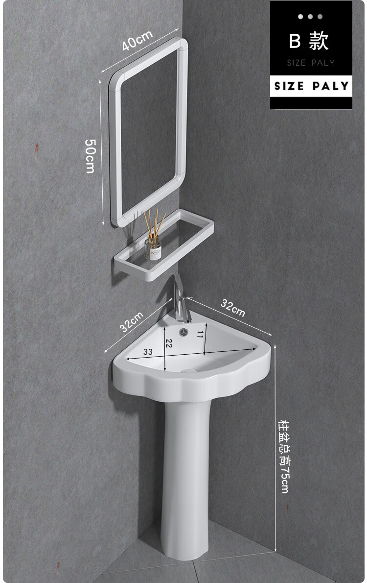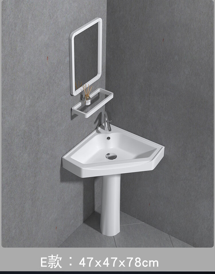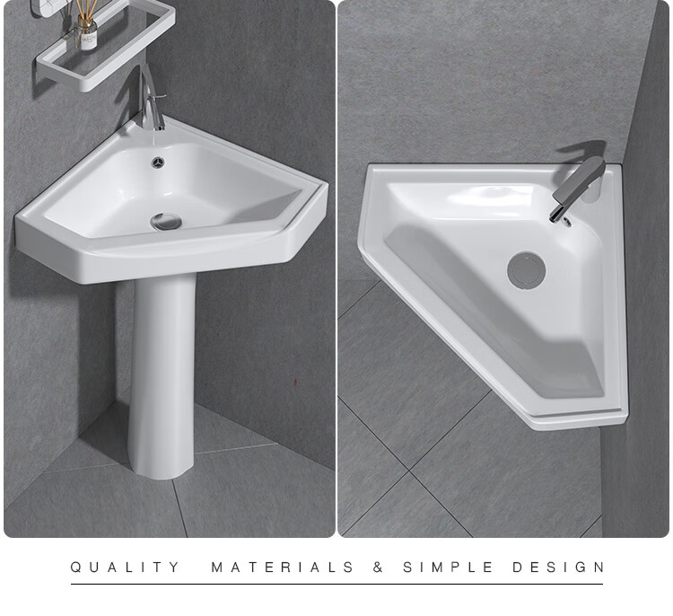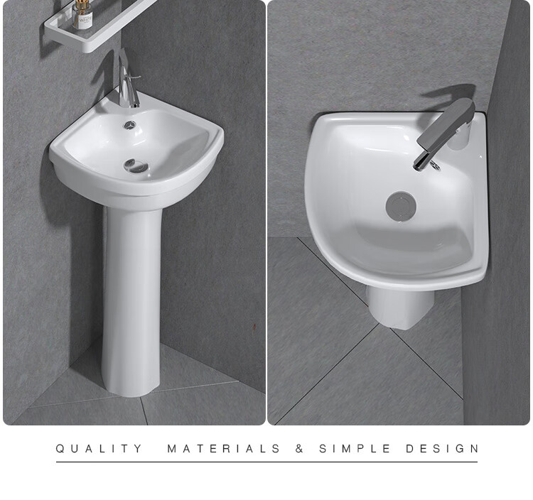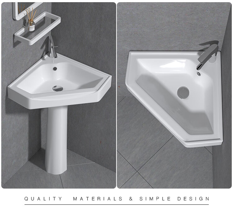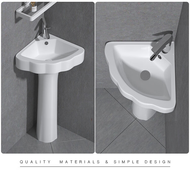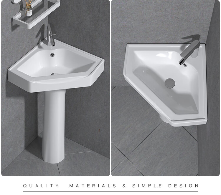 Triangular basin wash basin small apartment bathroom corner pedestal basin mini corner pedestal wash basin household A type pedestal basin + hot and cold complete set 26X26 cm