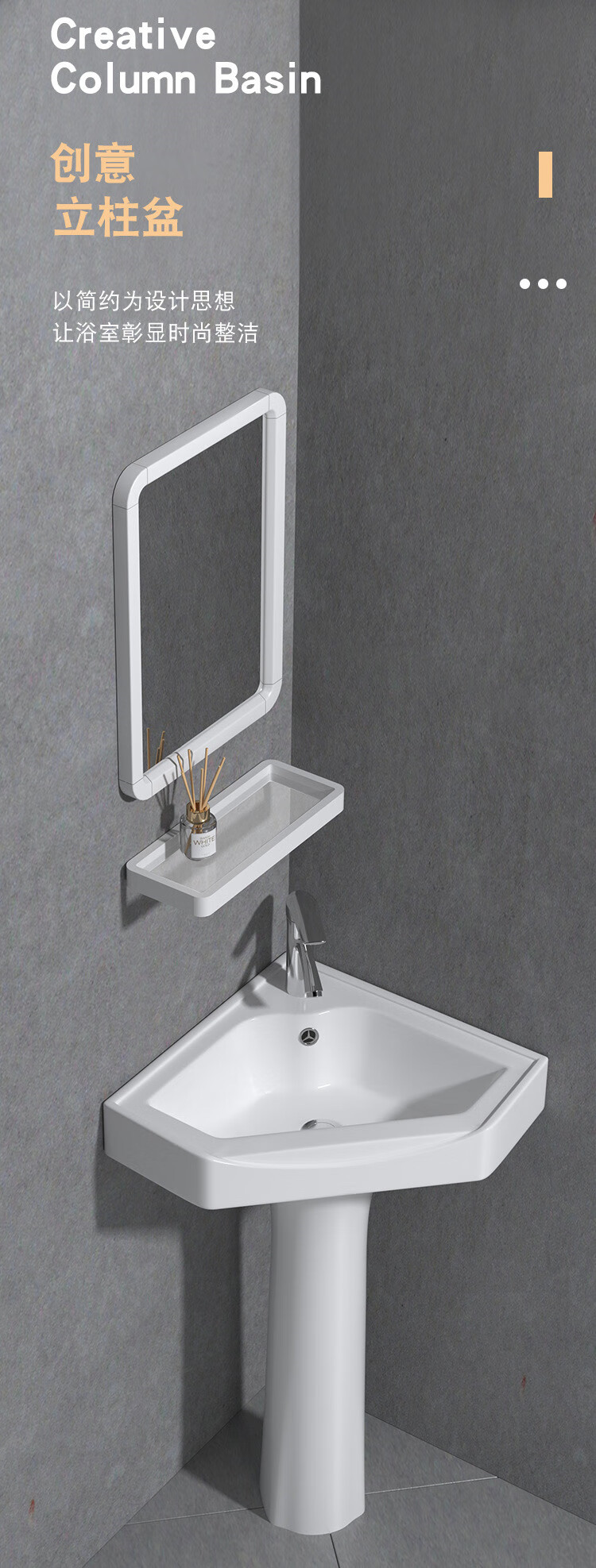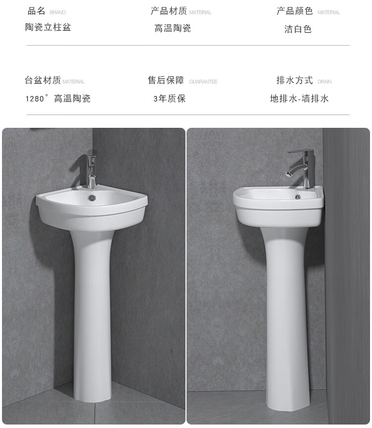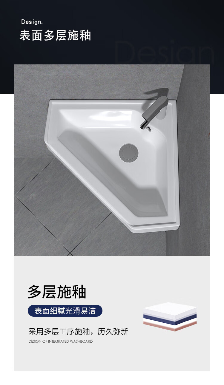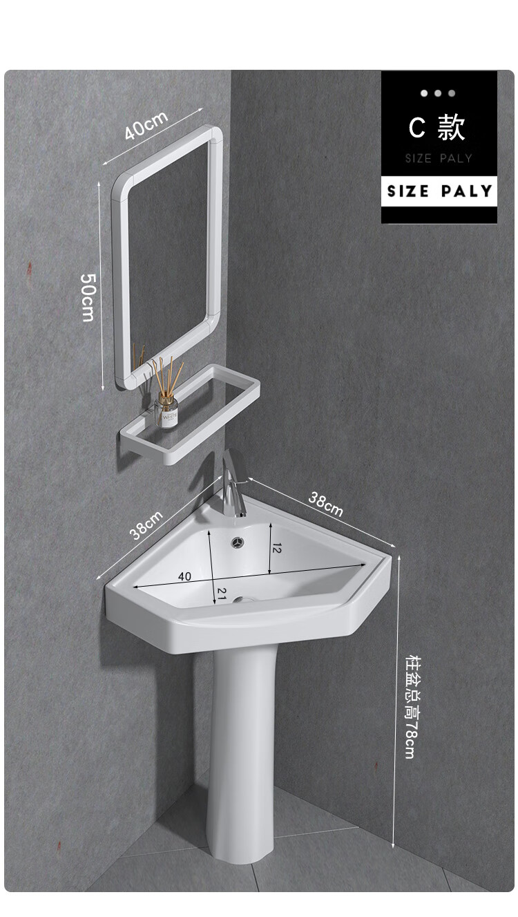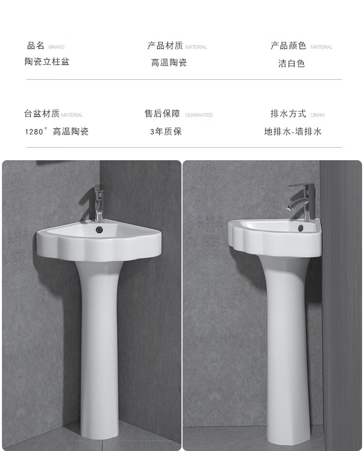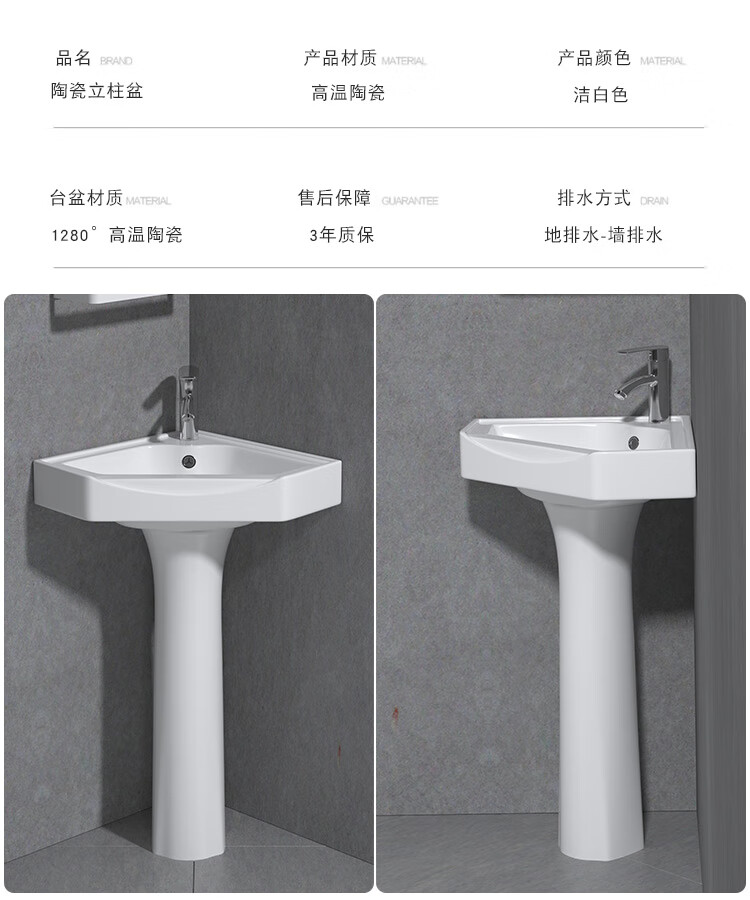 Triangular basin wash basin small apartment bathroom corner pedestal basin mini corner pedestal wash basin household A type pedestal basin + hot and cold complete set 26X26 cm