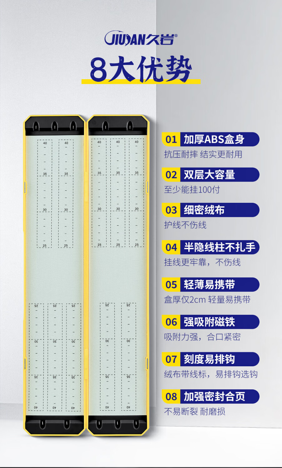 January fishing line box line special double-layer large-capacity ultra-thin hanging box velvet with scale fishing gear fishing hook box large-capacity double-layer sub-line box (45cm long) can hang 100 pairs
