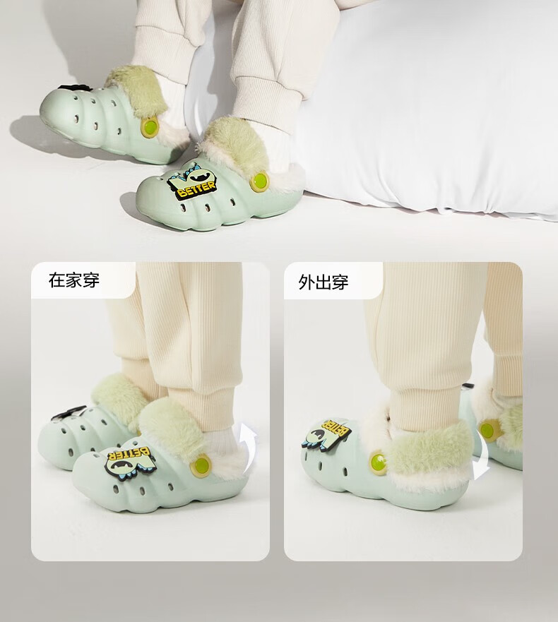 Bc babycare children's clogs summer boys and girls sandals children's home baby slippers summer Ka'er green winter velvet style free matching buckle inner length 16cm