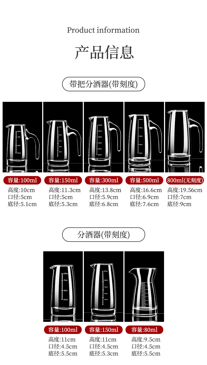 DKO wine divider white wine cup set wine cup scale divider jug old-fashioned glass wine measurer household commercial decanter (crystal 6 pieces) without handle with scale 100ml