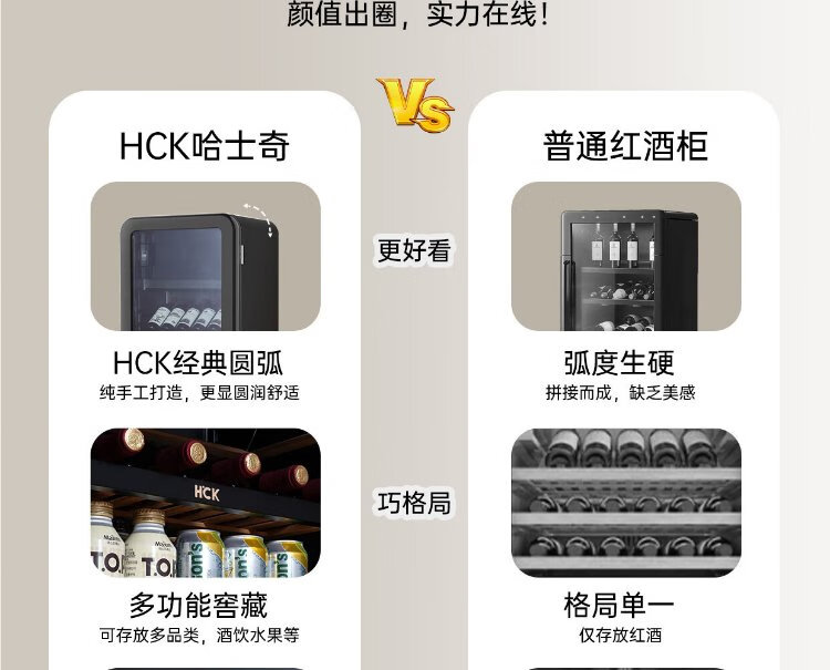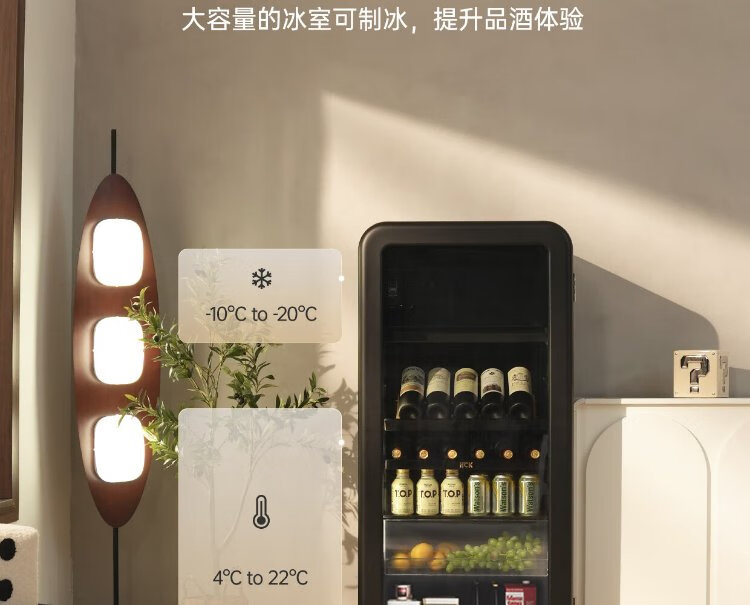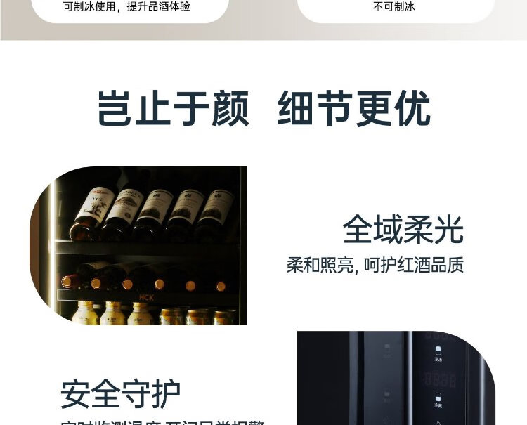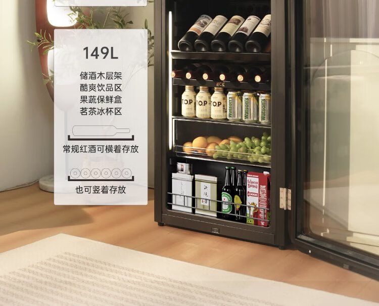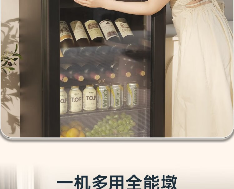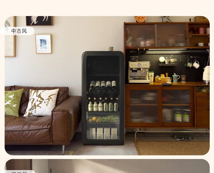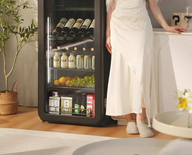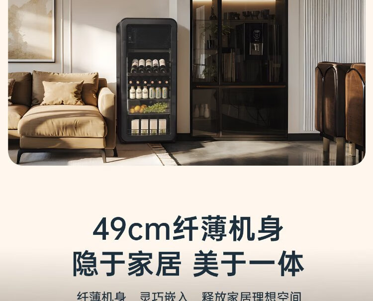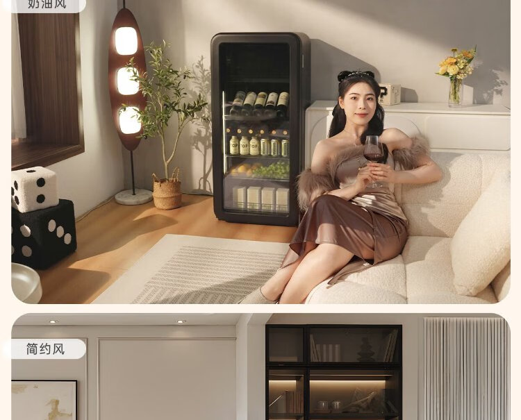 HCK Husky National Subsidy 168L Refrigerator Embedded Ice Bar First Class Energy Efficiency Dual Temperature Wine Cabinet Retro Home Frozen Refrigerated Wine Display Cabinet Vertical Freezer Living Room Refrigerator - Milk Tea Color 168L