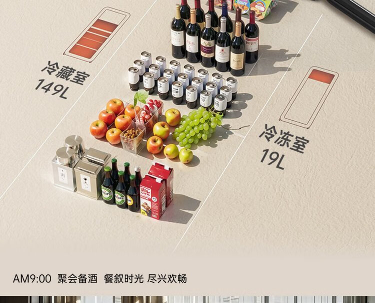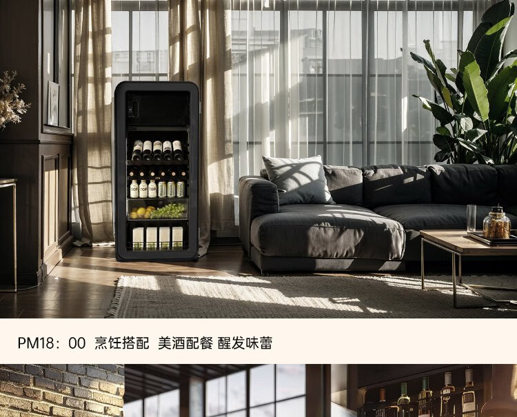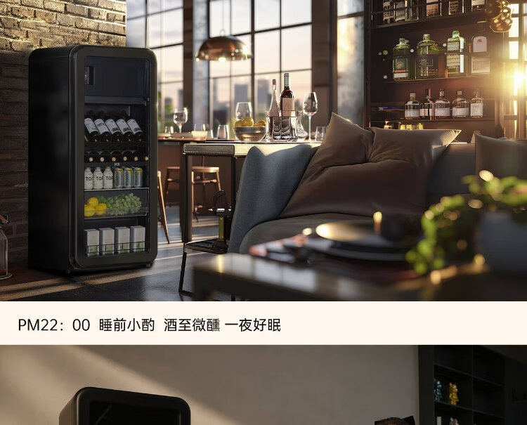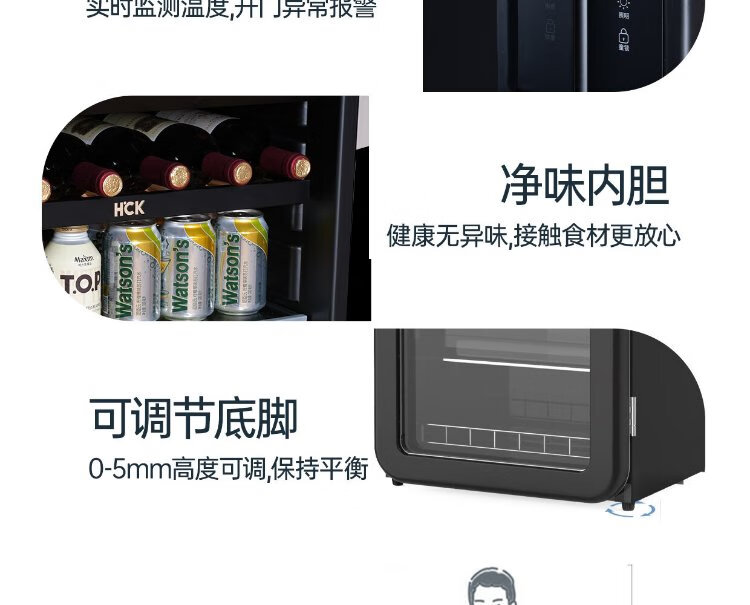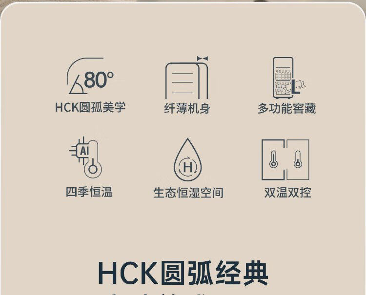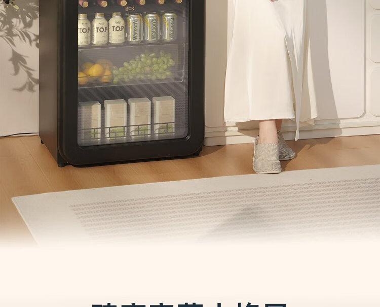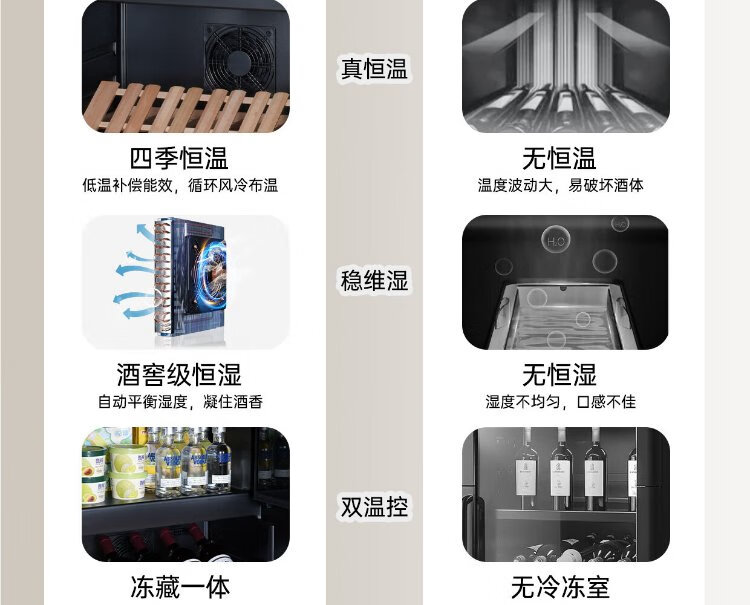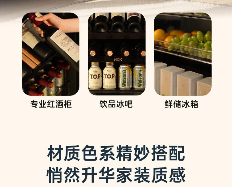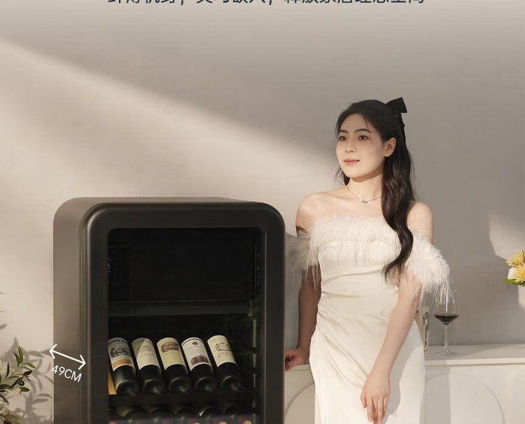 HCK Husky National Subsidy 168L Refrigerator Embedded Ice Bar First Class Energy Efficiency Dual Temperature Wine Cabinet Retro Home Frozen Refrigerated Wine Display Cabinet Vertical Freezer Living Room Refrigerator - Milk Tea Color 168L