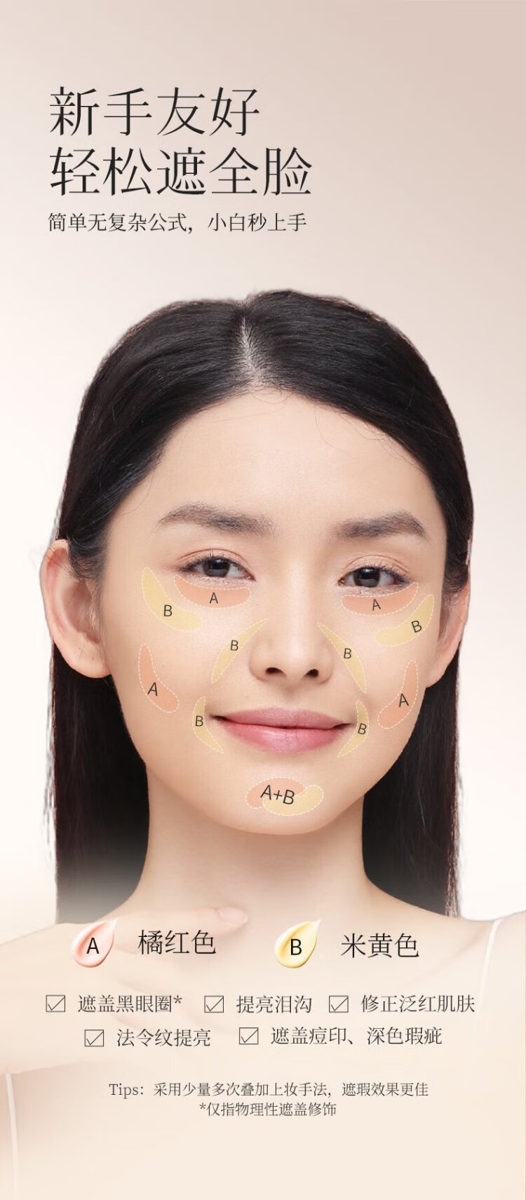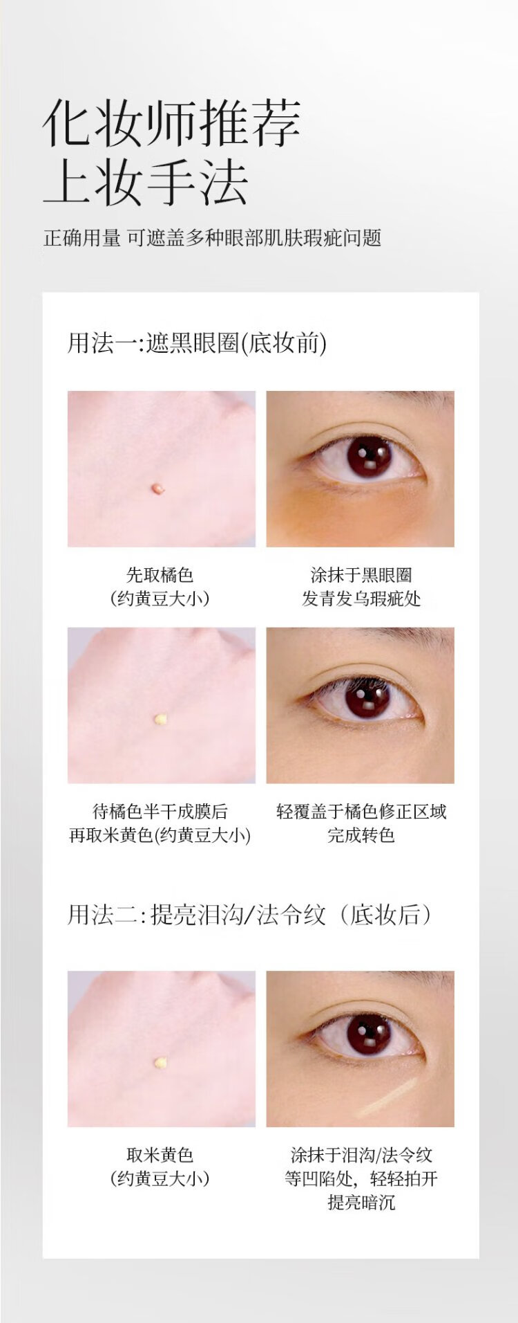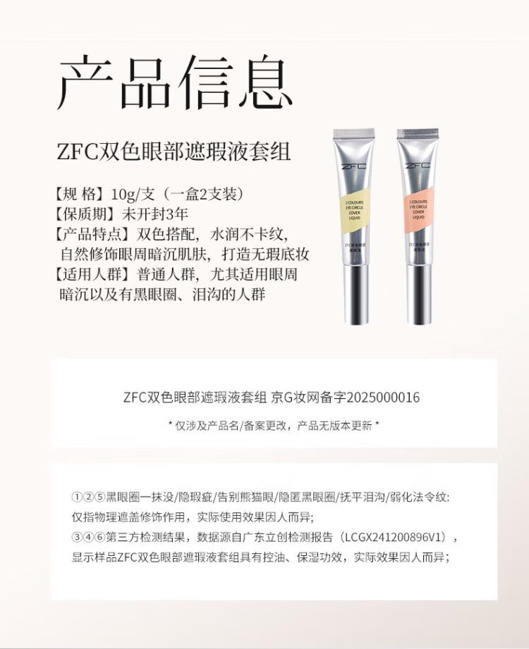 ZFC Charm Double Color Eye Bag Cream Covers Dark Circles, Acne, Marks, Spots, and Blemishes, Brightens Skin, Highlights, and Concealer Cream 20g, Orange + Beige (Two Packs)