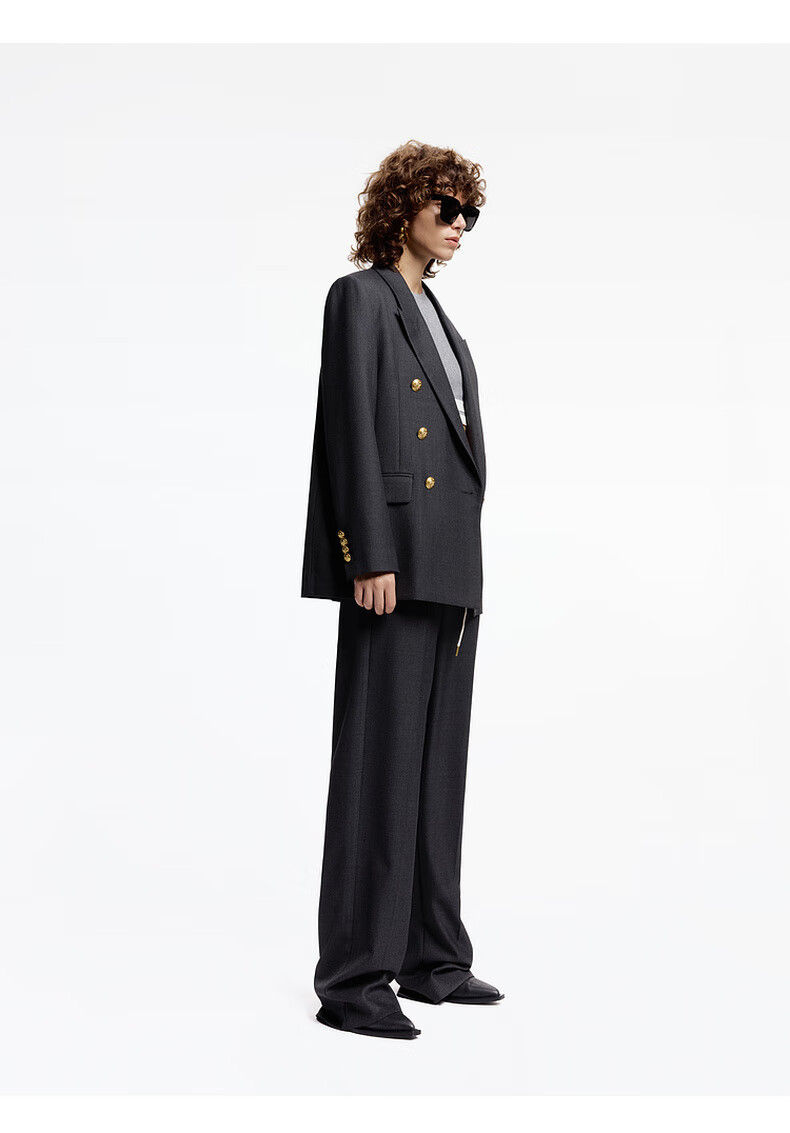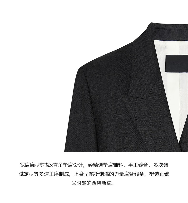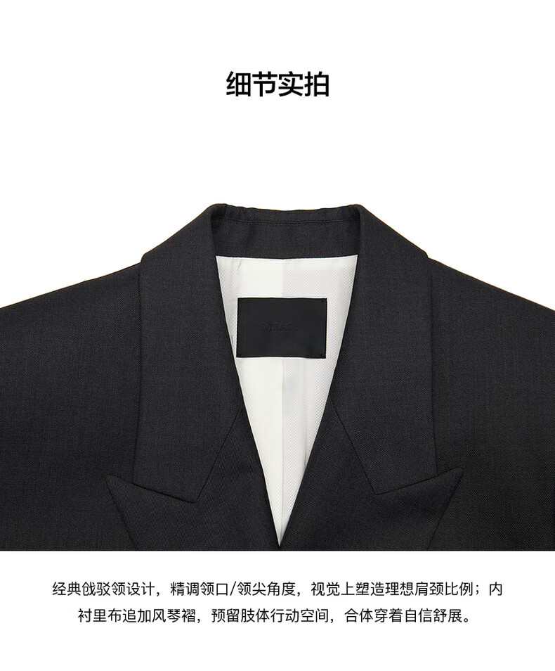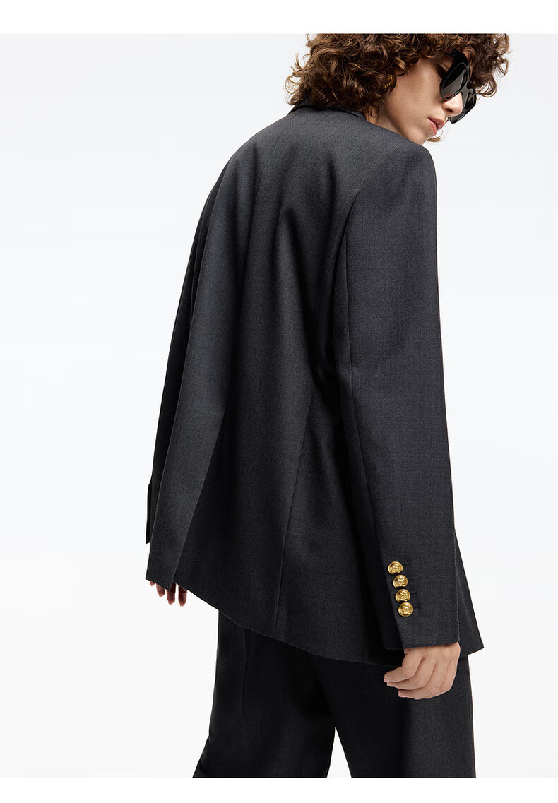 MO&Co. Spring and Autumn Sheep Wool Worsted Patch Collar Padded Shoulder Broad Shoulder Blazer Moanke Apricot S 160