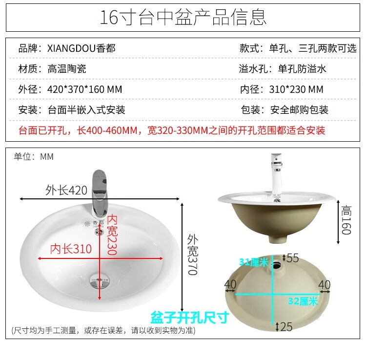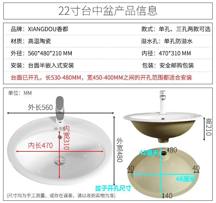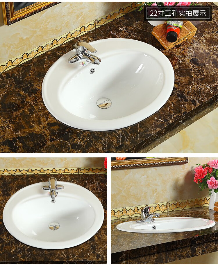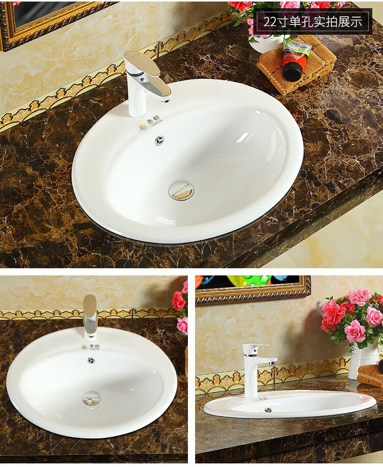 Above-the-counter basin, semi-embedded washbasin, oval countertop basin, square basin, washbasin, under-counter basin, 22-inch three-hole washbasin. Drainer. Ceramic glue.