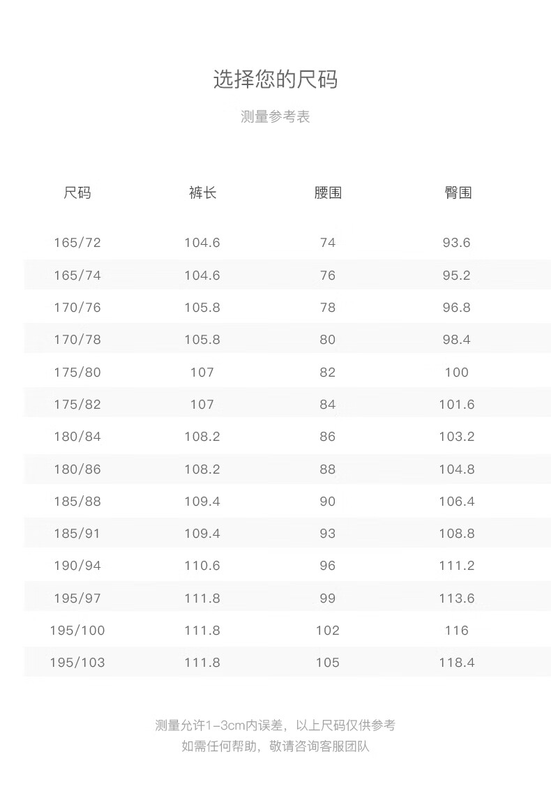 Outseam (cm) 99 cm 101.5 cm 104 cm 106.5 cm 109 cm