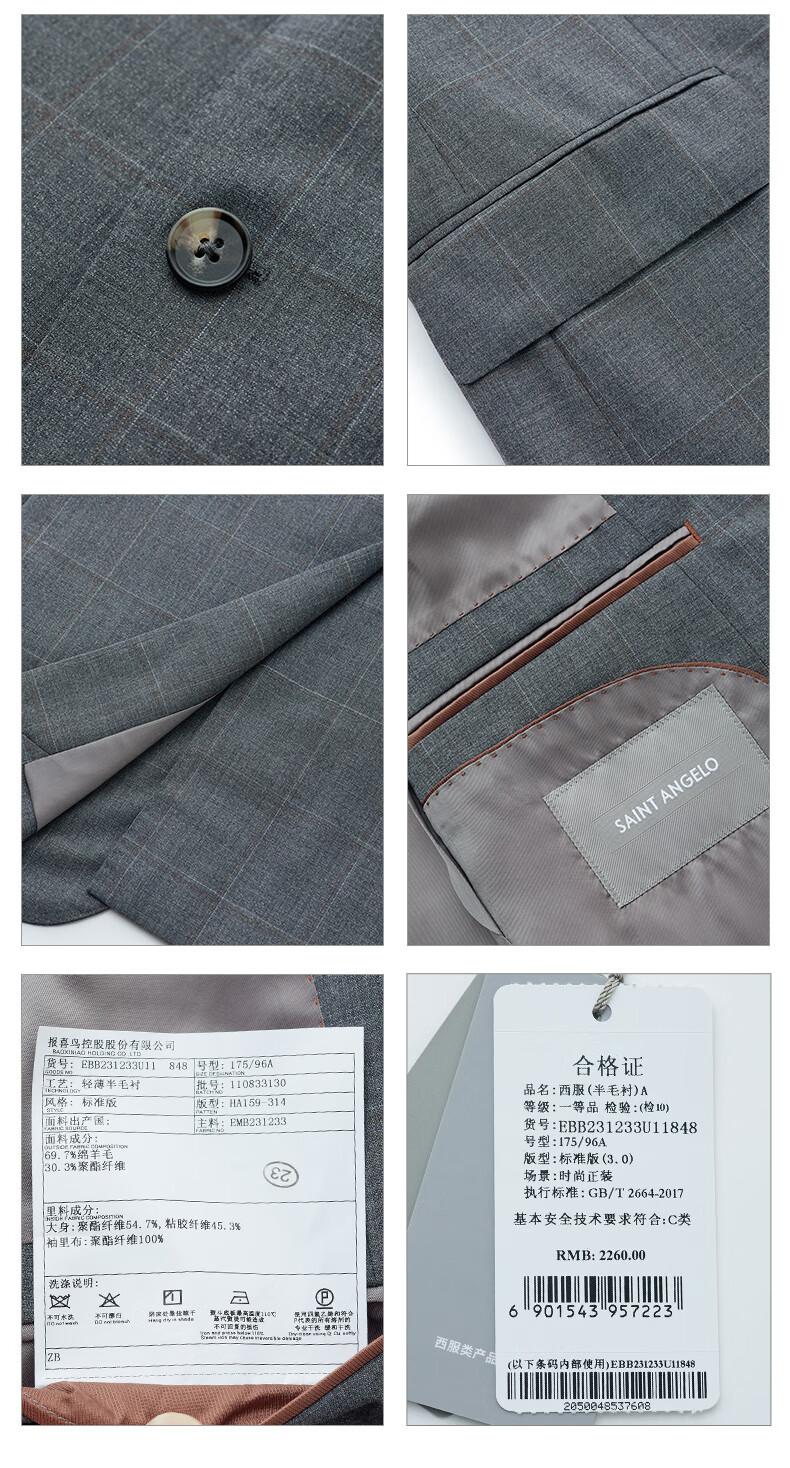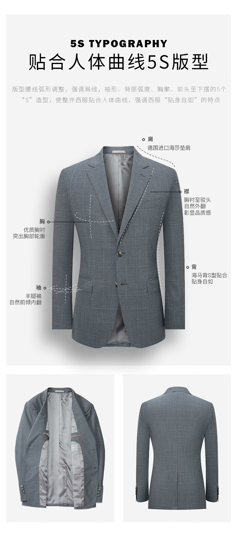 Anniversary Bird Suit Men's Spring New Men's Business Casual Suit Plaid Suit Suit Pants Suit Men's Pearl Gray Inlaid Brown Double Line Plaid 44 A(165/88) /Please note waist or pants
