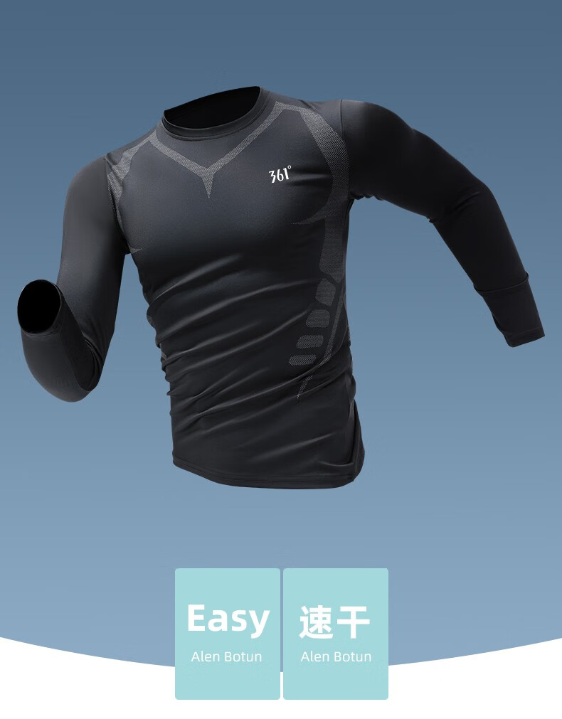 361 tights men's sports and fitness quick-drying clothing training running high-elastic sports sweat-wicking tops underwear base elite long-sleeved 3XL