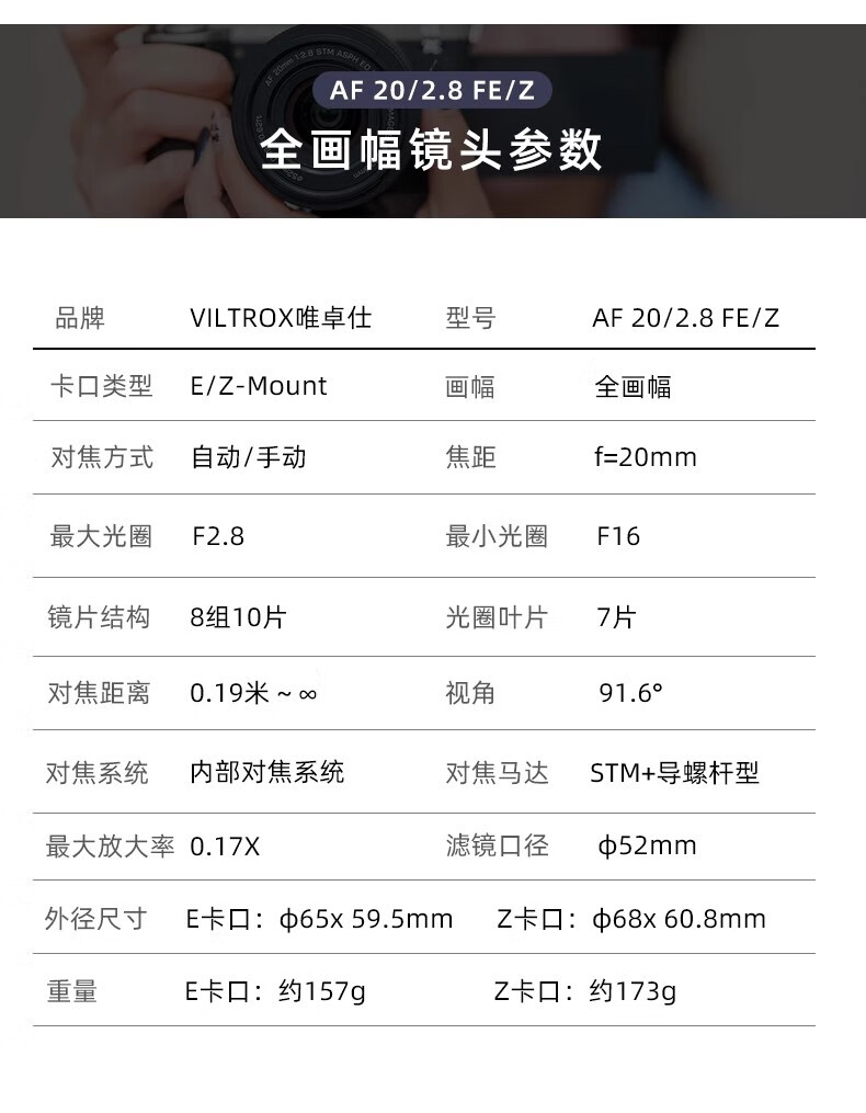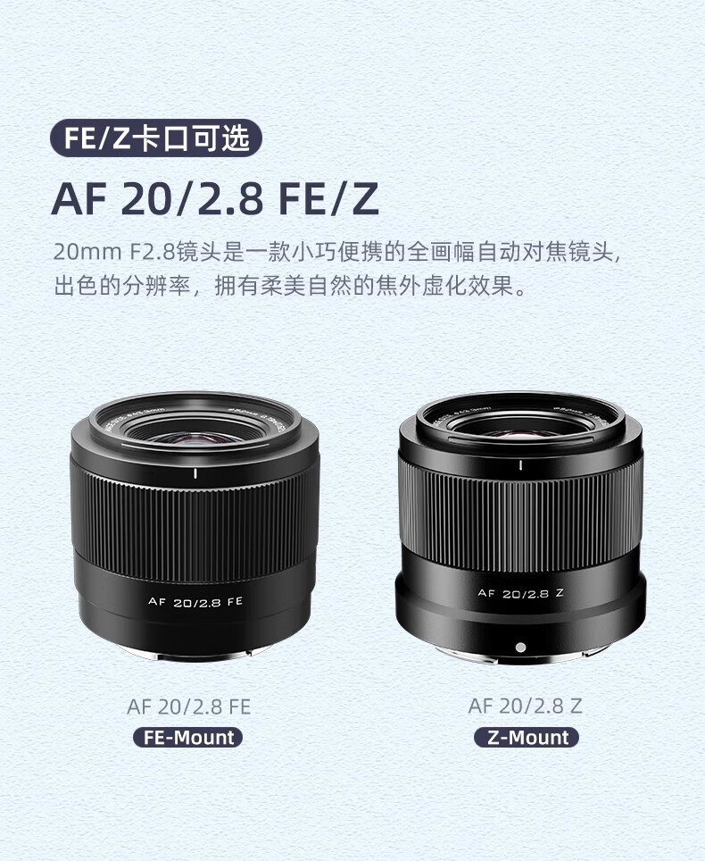 VITROX VITROX 20mm F2.8 full-frame ultra-wide-angle lens is suitable for E/Z mount mirrorless cameras with autofocus AF20mmF2.8Z