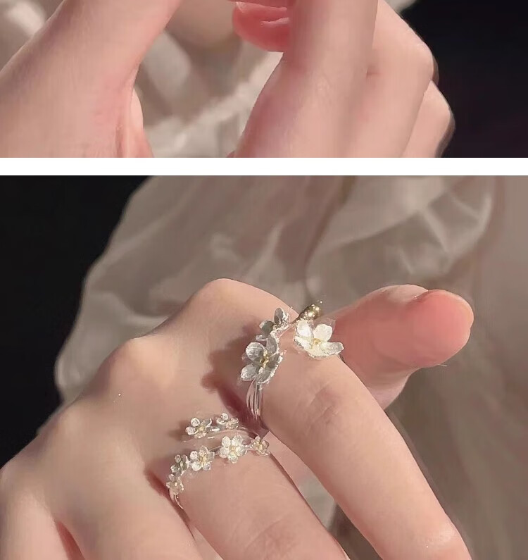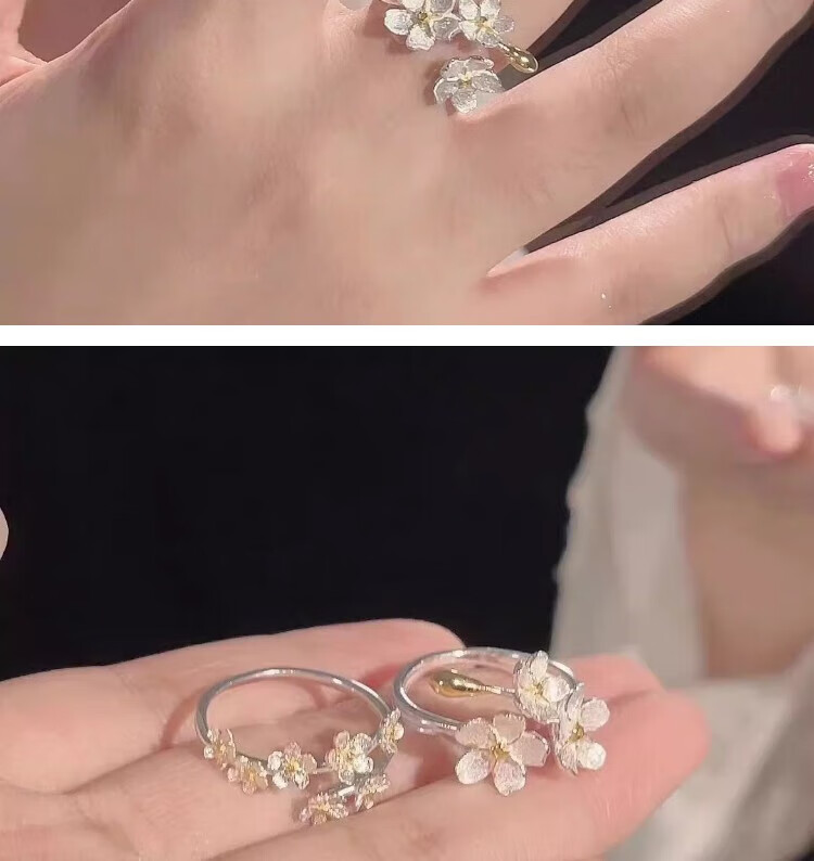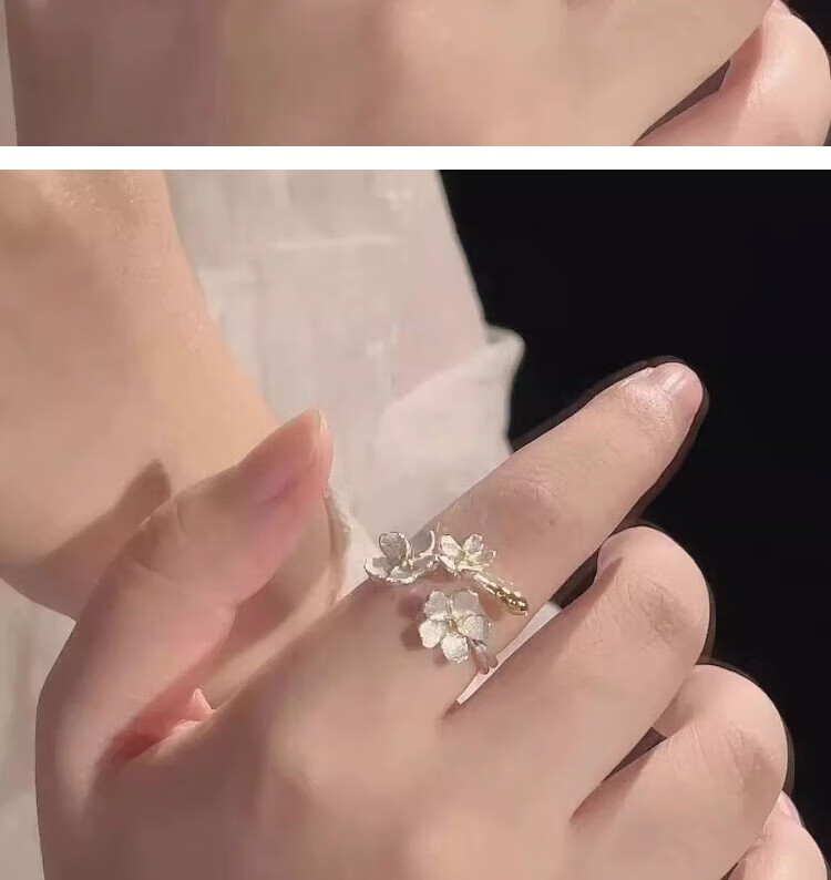 Mansheng camellia ring bestie simple three-dimensional flower ins niche design light luxury advanced adjustable ring gift two-piece ring set