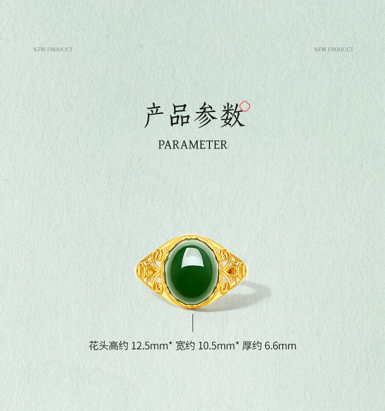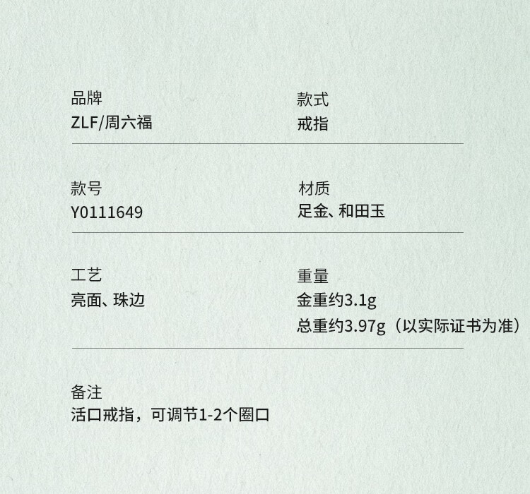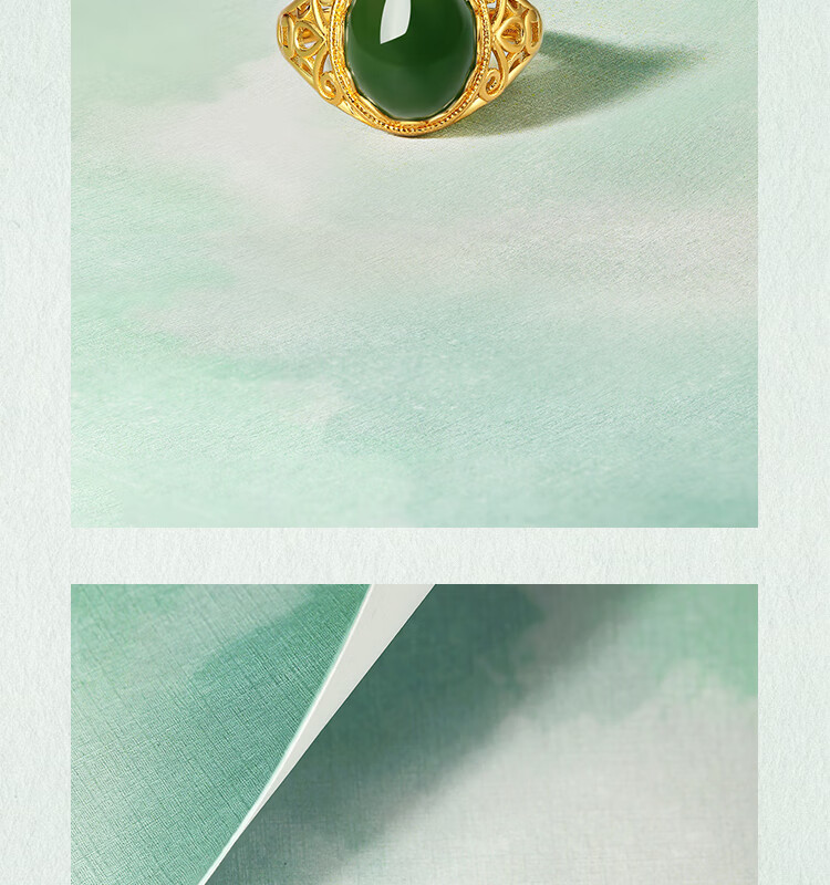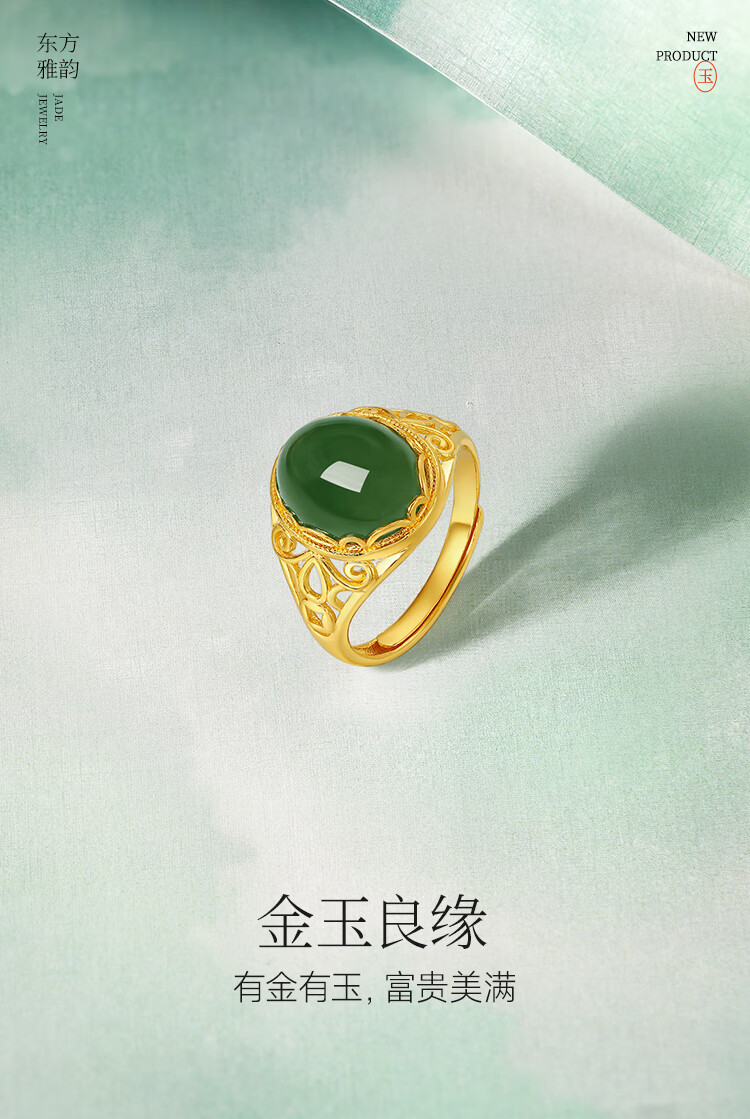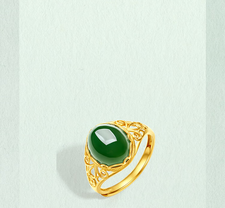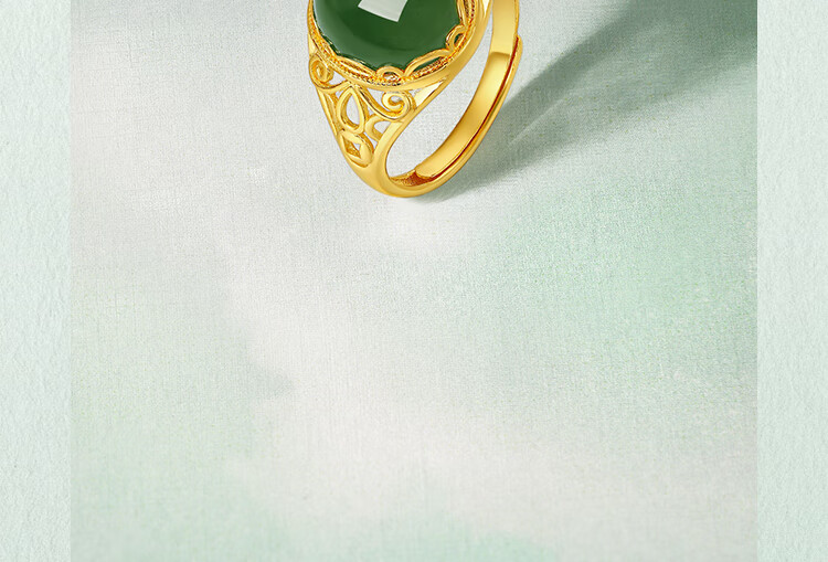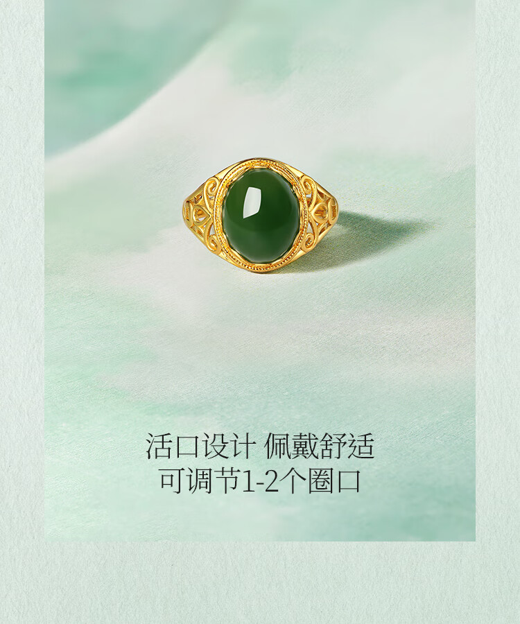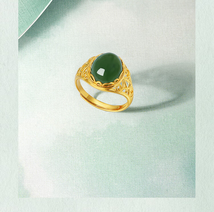 Saturday Fortune (ZLF) gold inlaid jade ring for women, full gold and Tian jasper ring, gift for mother, wife, size 15 (adjustable)