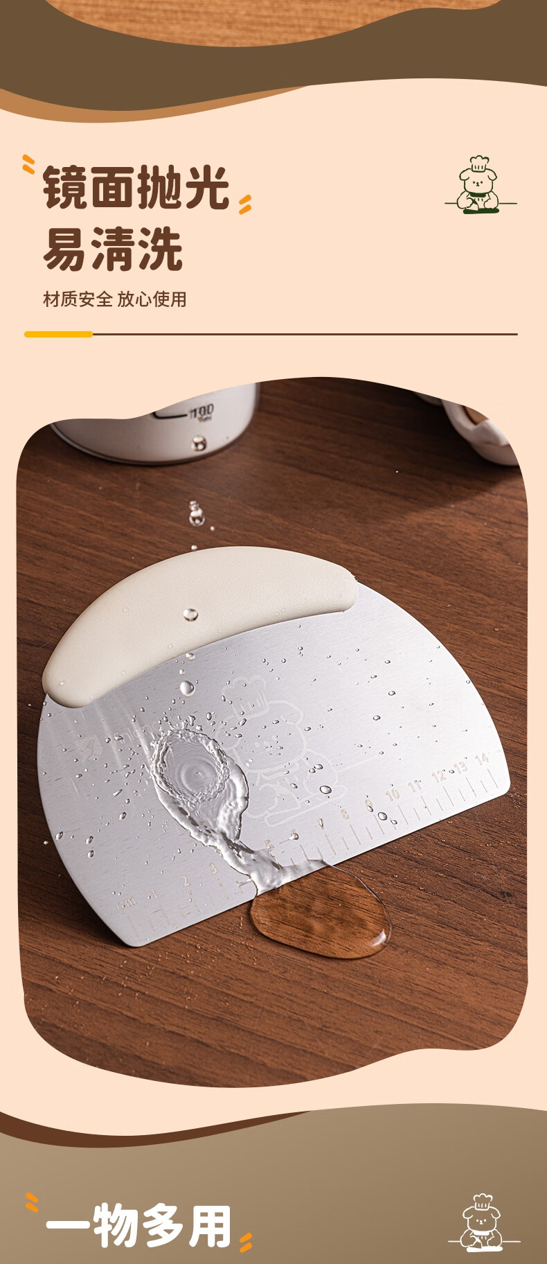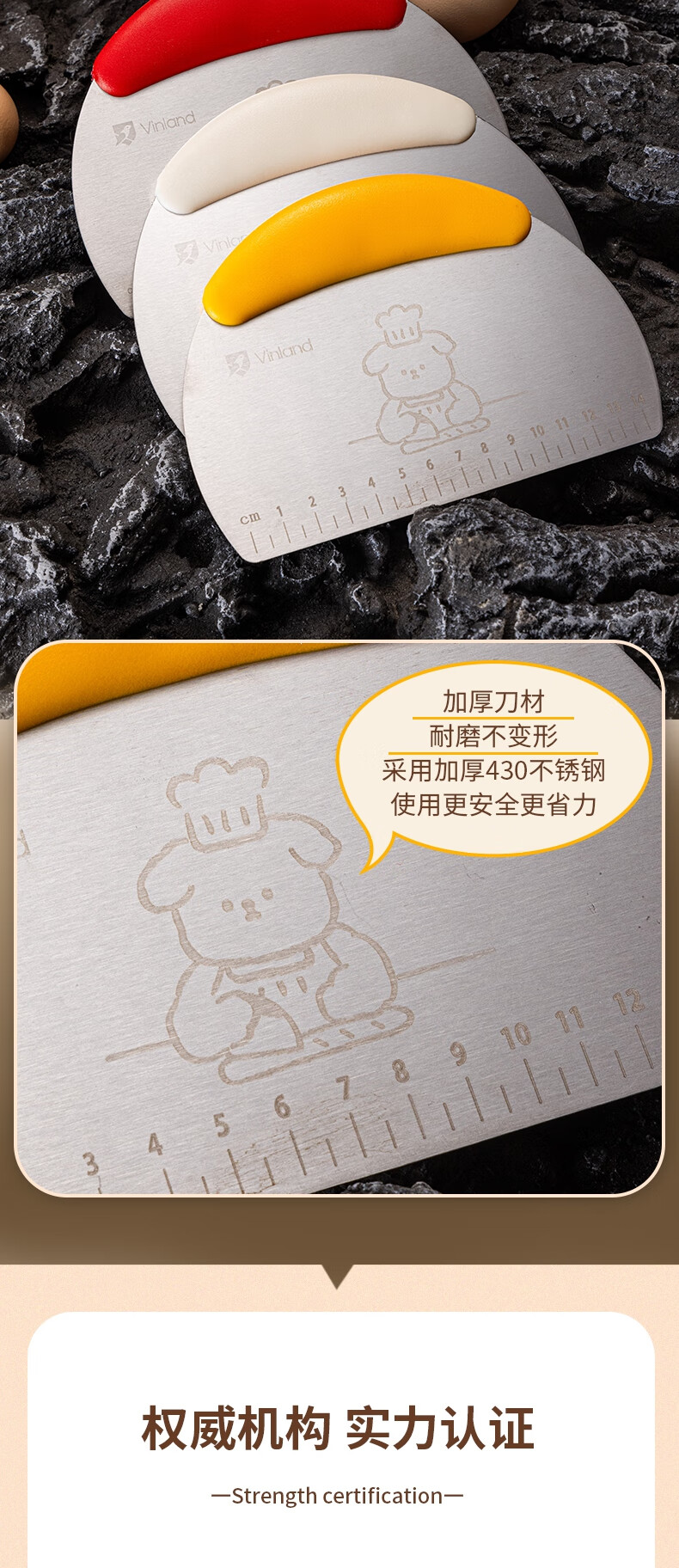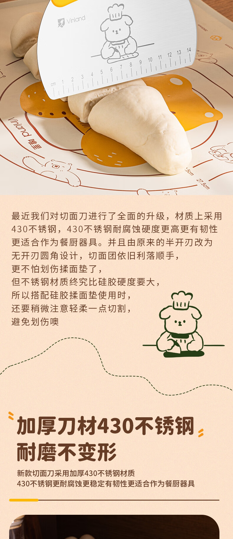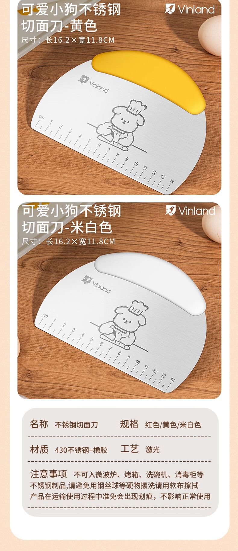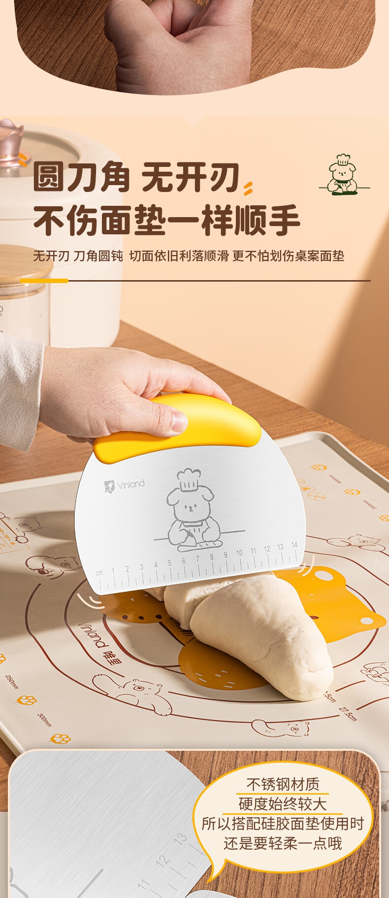 Vinland British food grade dough cutter special dough scraper baking snowflake crisp stainless steel cutter silicone scraper tool puppy stainless steel scaled dough cutter - rice white