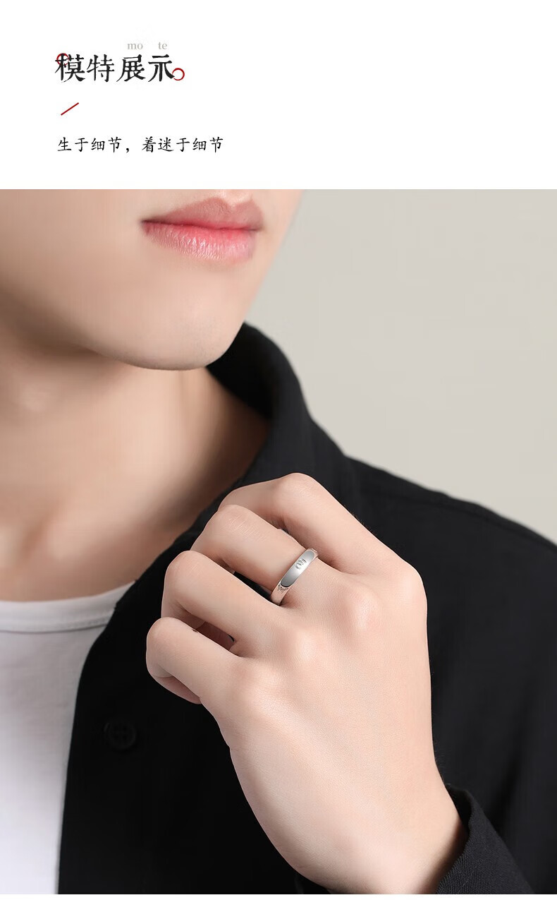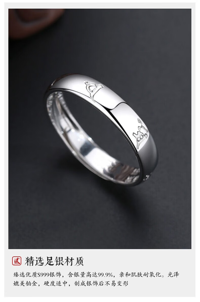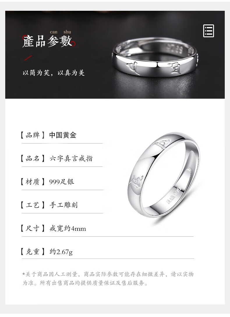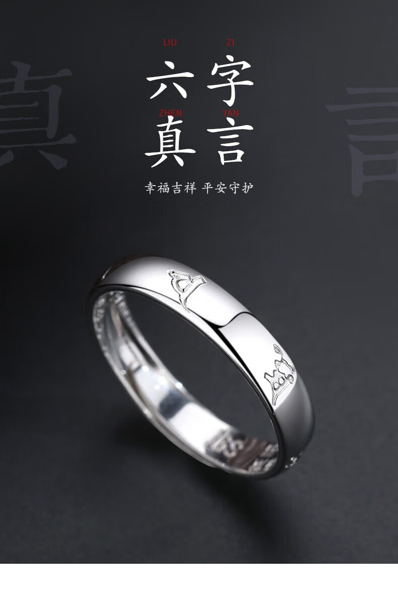 China Gold (CHINA GOLD) pure silver ring men's six-character mantra plain ring index finger tail ring birthday gift for boyfriend and husband practical 999 pure silver six-character mantra plain silver ring