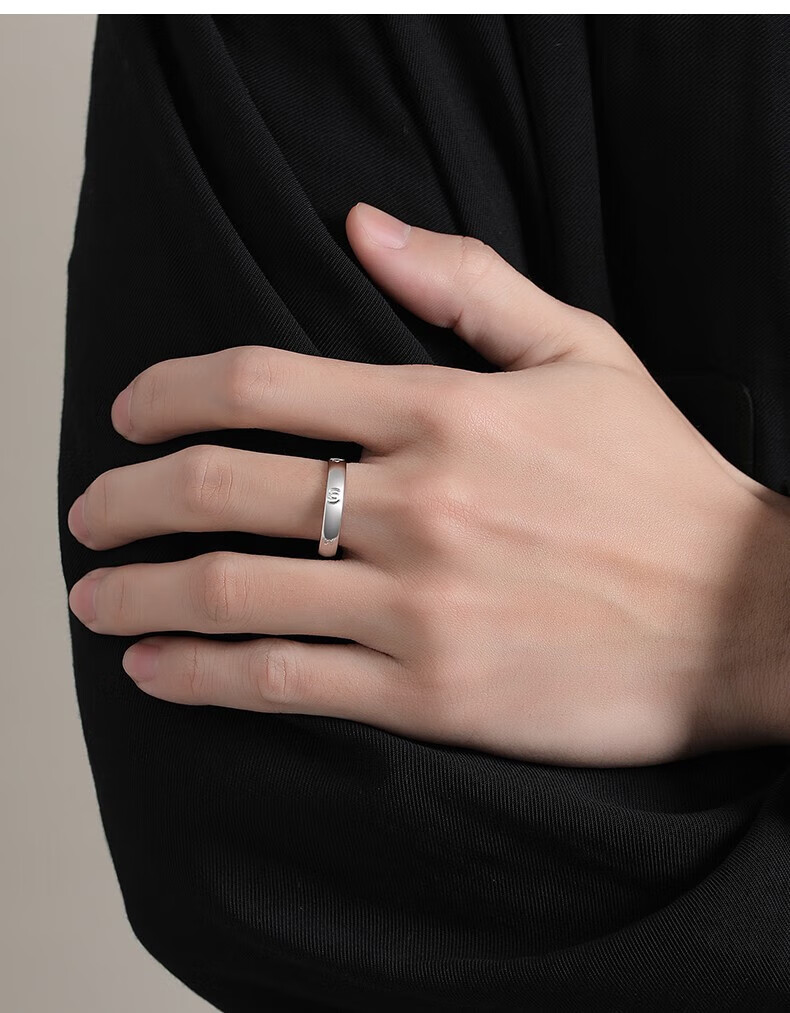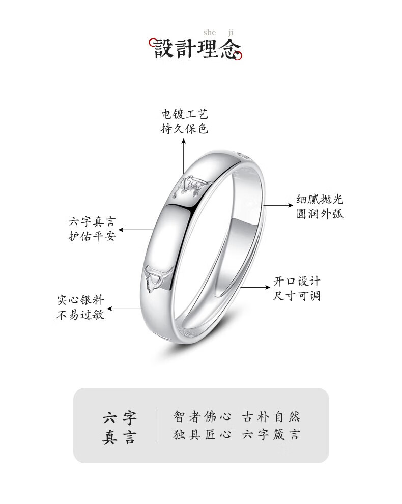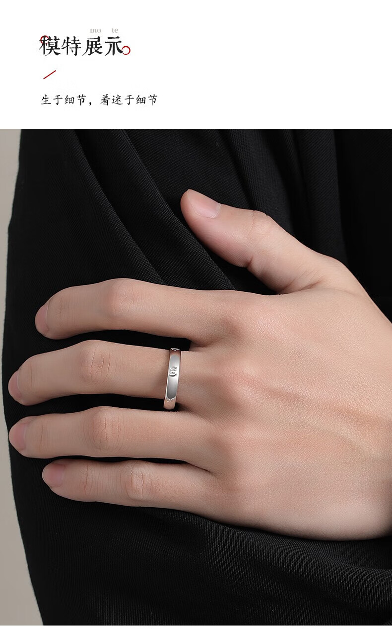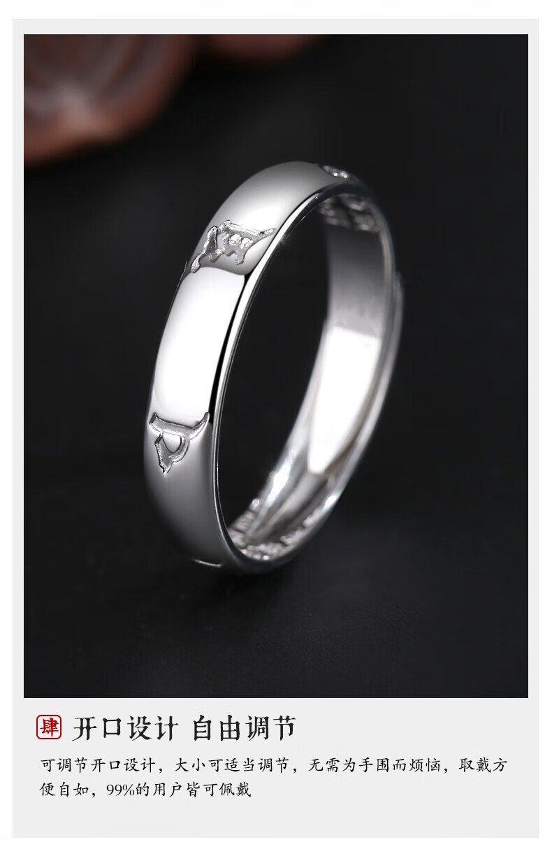 China Gold (CHINA GOLD) pure silver ring men's six-character mantra plain ring index finger tail ring birthday gift for boyfriend and husband practical 999 pure silver six-character mantra plain silver ring