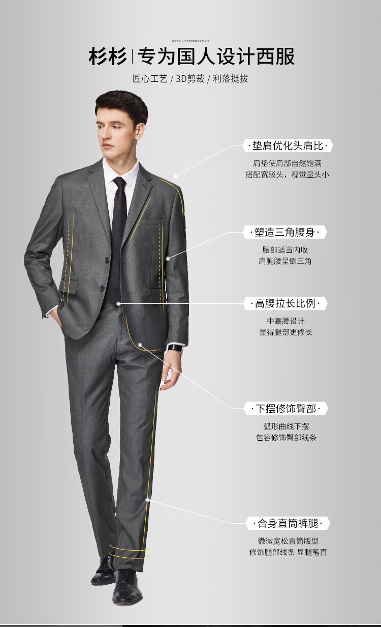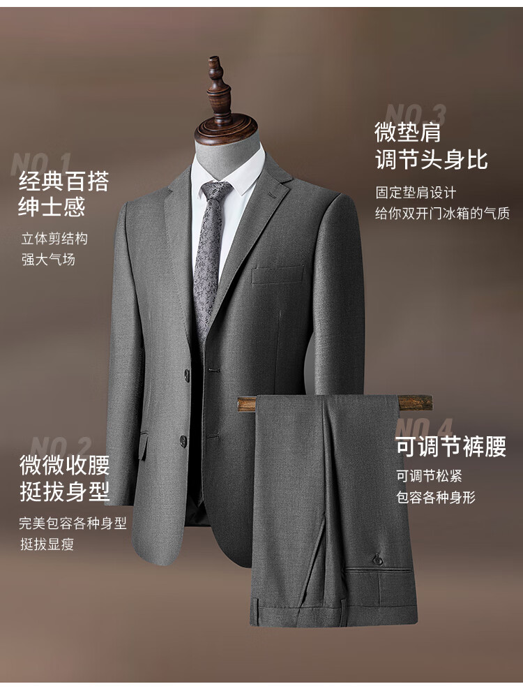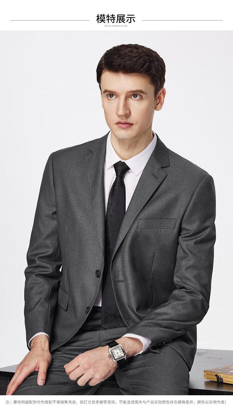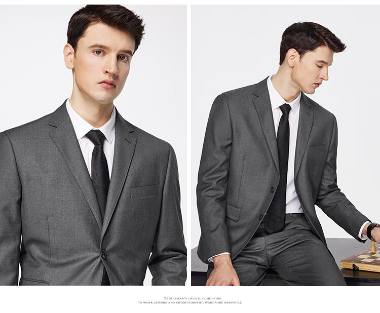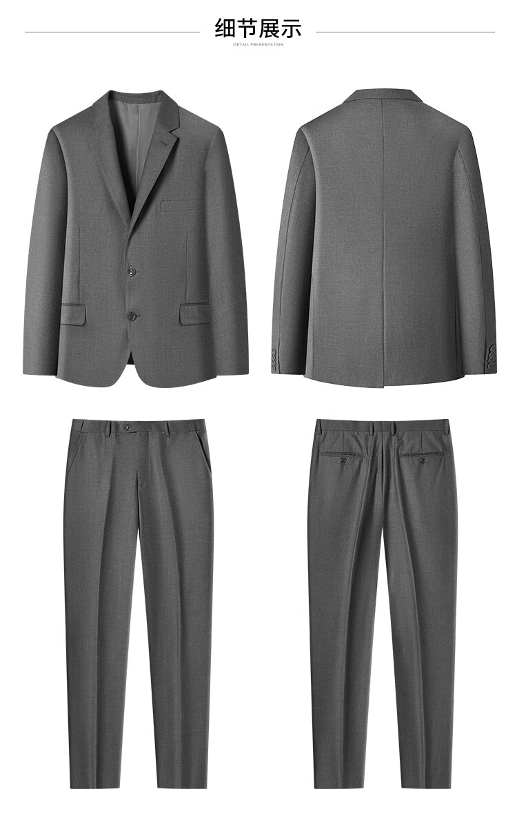 Shanshan Suit Men's Retro Floral Yarn Anti-Wrinkle Wear-Resistant Smooth Slim Business Professional Wear Groom and Best Man Wedding Dress Gray L 175/92A(48A) 175/82A(33)