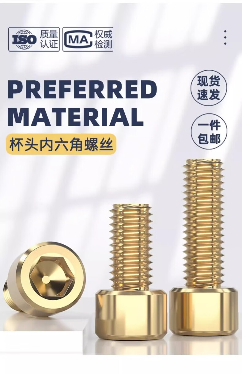 Fengji national standard pure brass full copper cup head hexagonal screws cylindrical head bolts M2M3M4M5M6M8M10M12mm M2*5 50 pieces