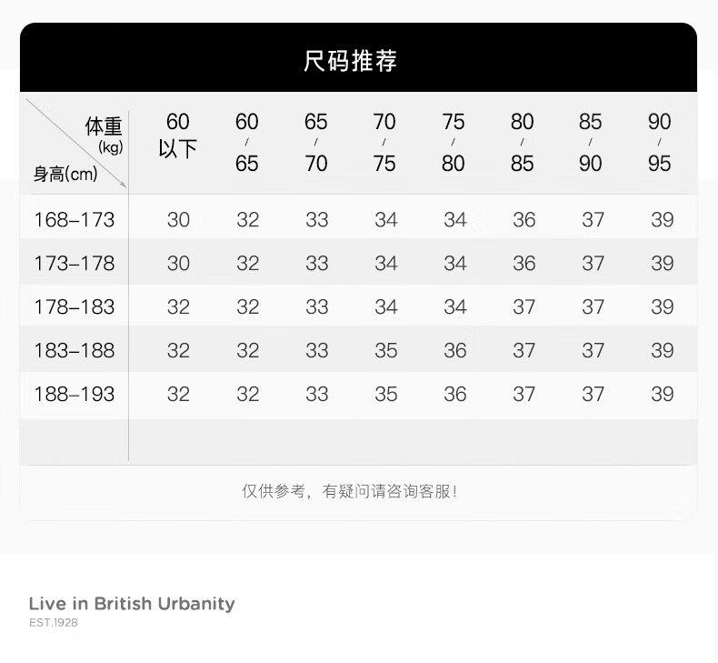 China (cm) 160-165/84-86 165-170 / 88-90 167-172 / 92-96 168-173 / 98-102 170-176 / 106-110