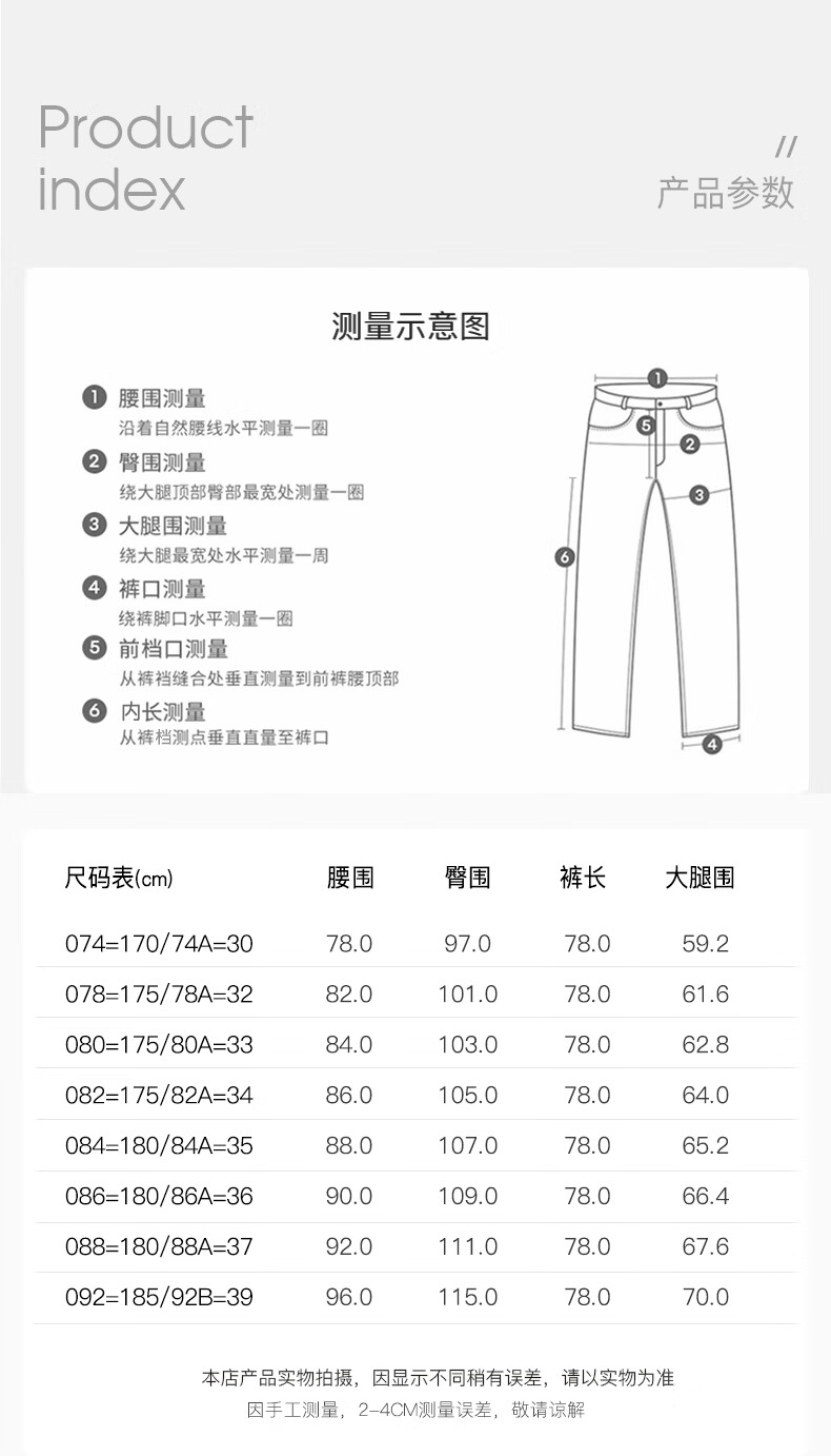 Outseam (cm) 99 cm 101.5 cm 104 cm 106.5 cm 109 cm