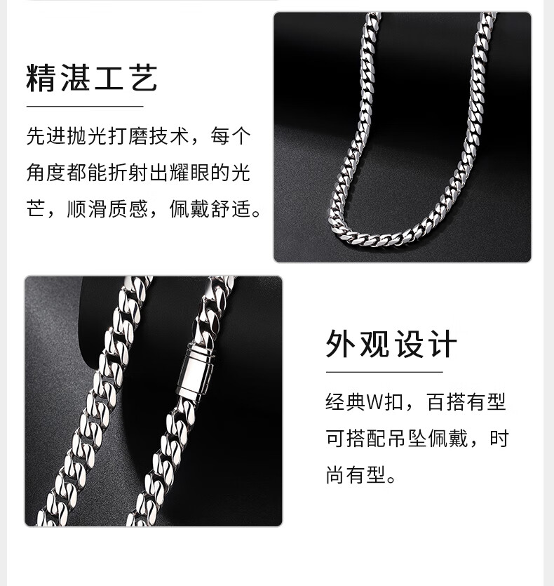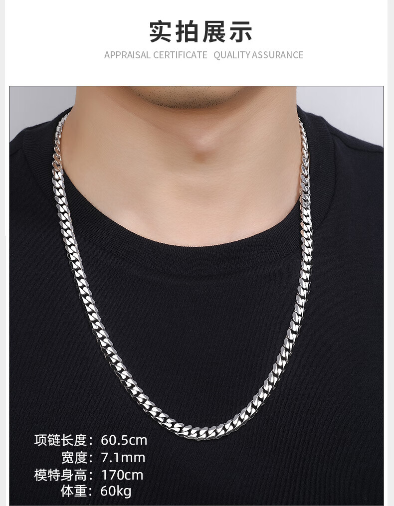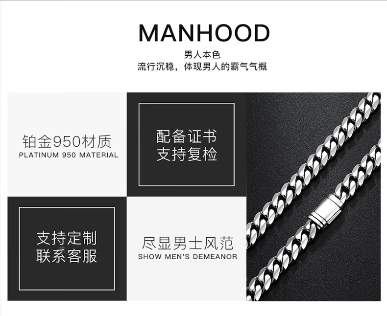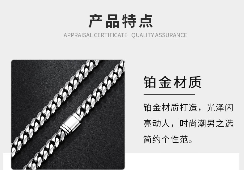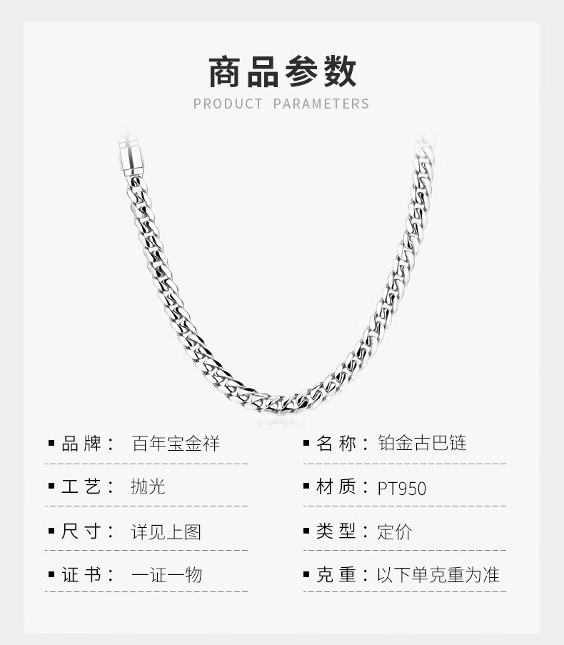 Centenary Baojinxiang Platinum Cuban Necklace Men's pt950 Platinum Men's Necklace Cuban Chain Trendy Brand Shows Thick Personality Flip Buckle 62cm Width 6.2mm Weight 89.08 Grams