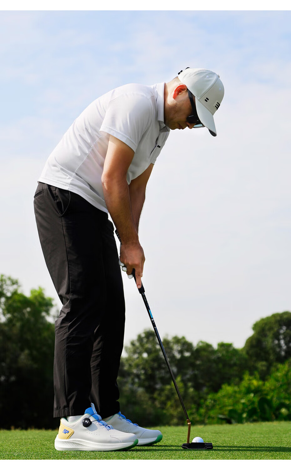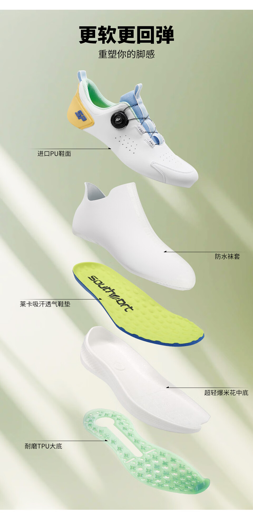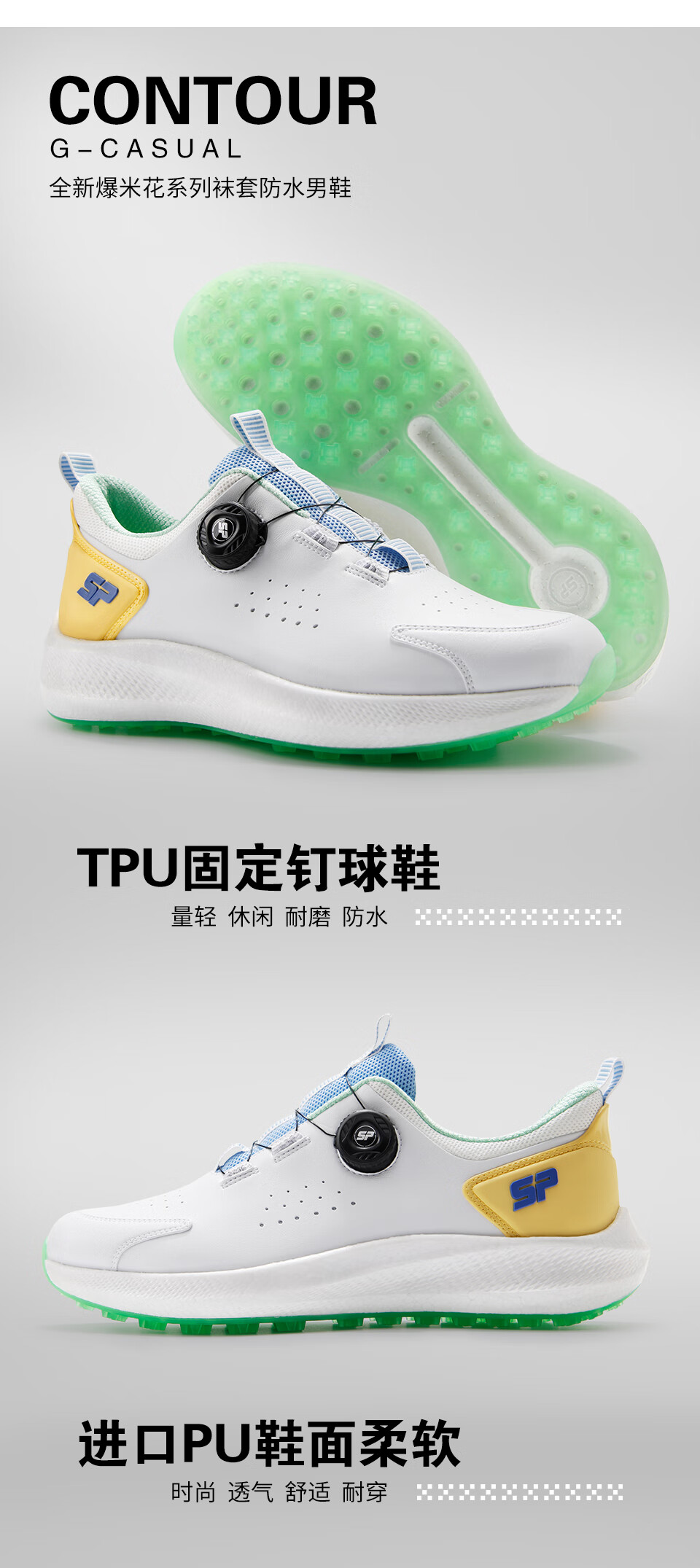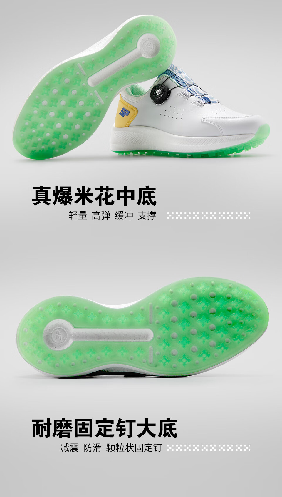 Southport 2025 golf shoes for men, new breathable sports shoes, knob laces, comfortable, waterproof and non-slip, white and yellow 41