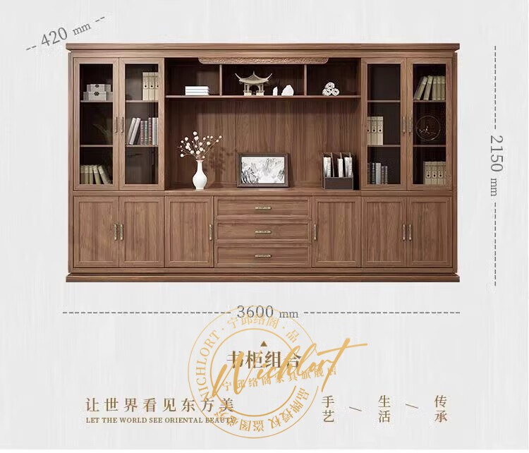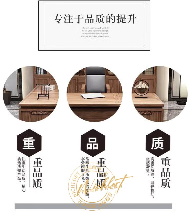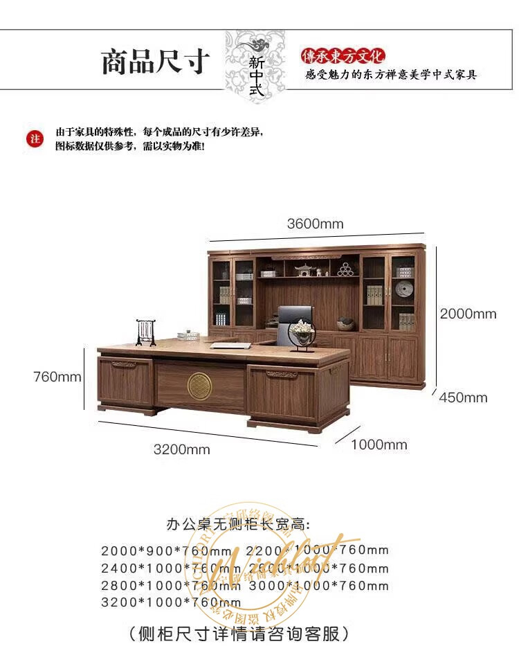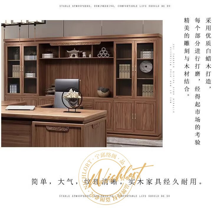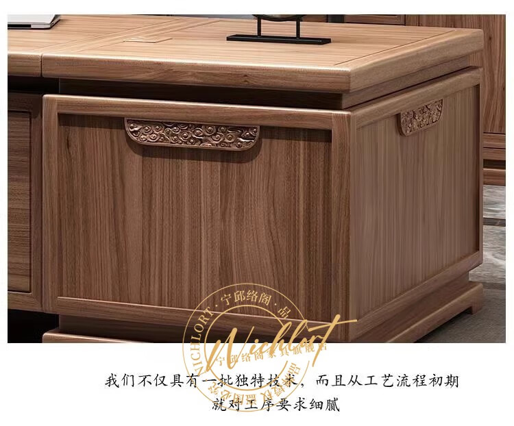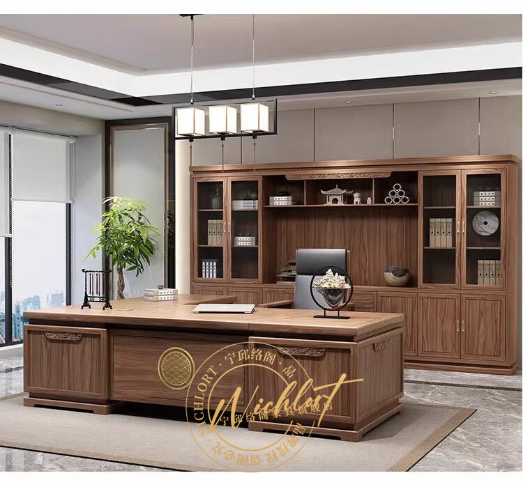 Ningqiu Luoge (NICHLORT) New Chinese Zen Executive Desk Boss Desk President Office Desk and Chair Sofa Coffee Table Furniture Solid Wood File Bookcase 3.2 Meter Boss Desk Ash Wood