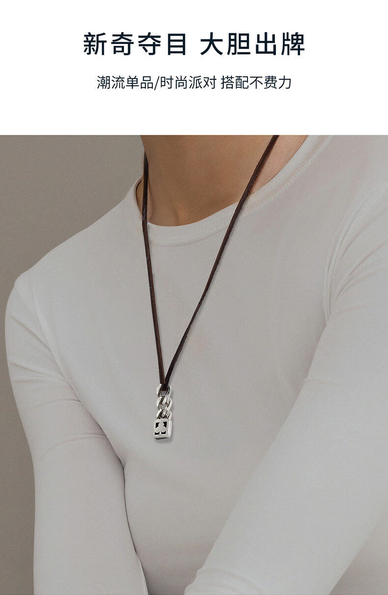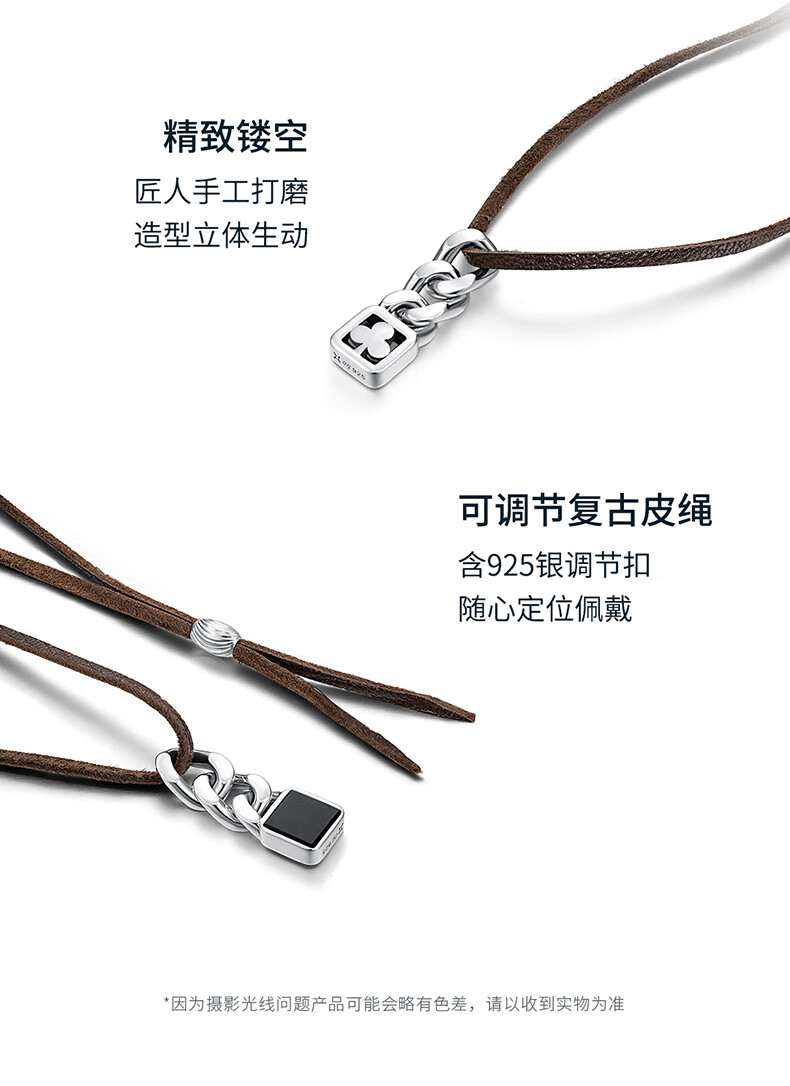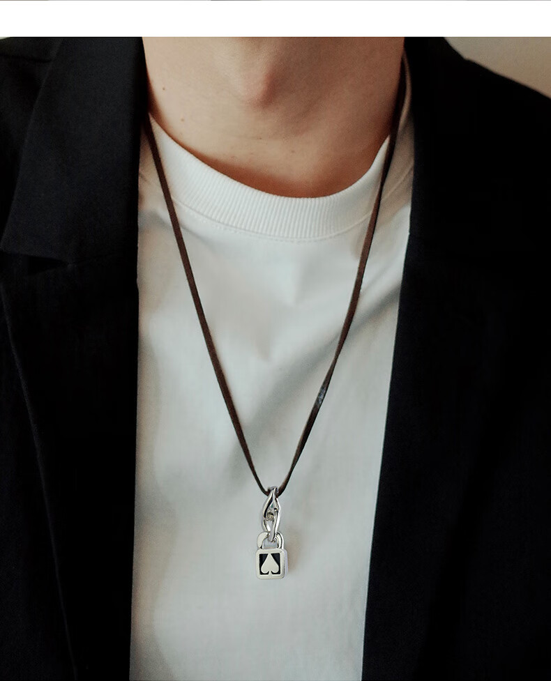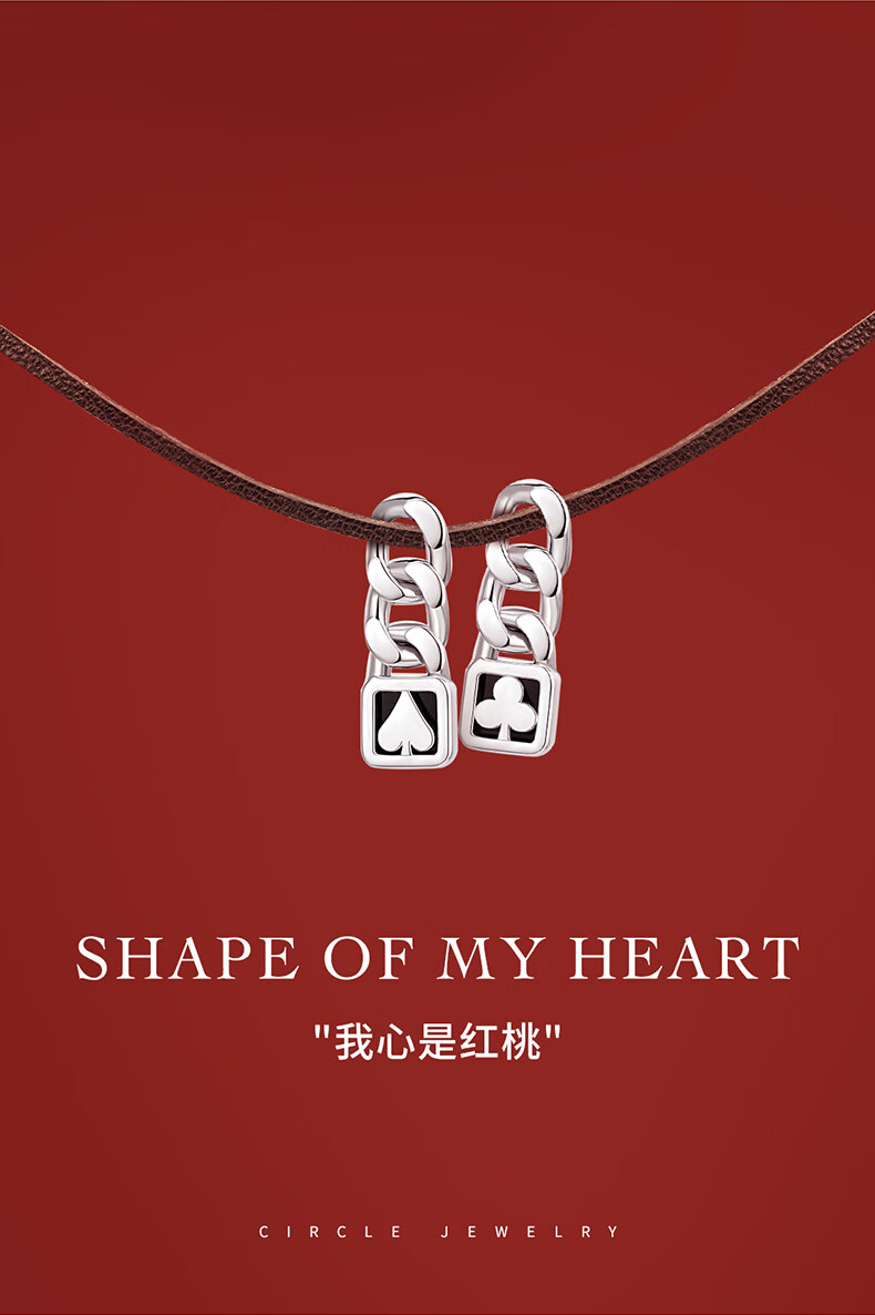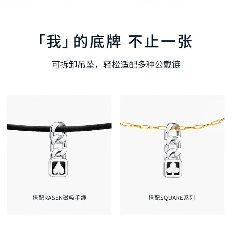 CIRCLE Jewelry Blooming Heart Agate Plum Blossom Square Graphic S925 Silver Pendant Necklace Long Rope Men's Birthday Gift Spades
