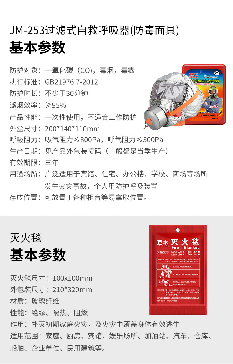 Jumu Home Fire Emergency Kit Rescue Kit Home Fire Escape Civil Defense Preparedness Emergency Kit Fire Blanket Gas Mask Home Fire 12-piece Set Fire 3C Dual Certification