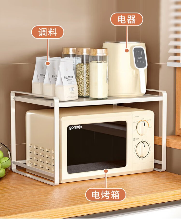 Fan Lilin microwave oven rack kitchen countertop storage rack rice cooker oven rack household multi-functional condiment rack white medium size