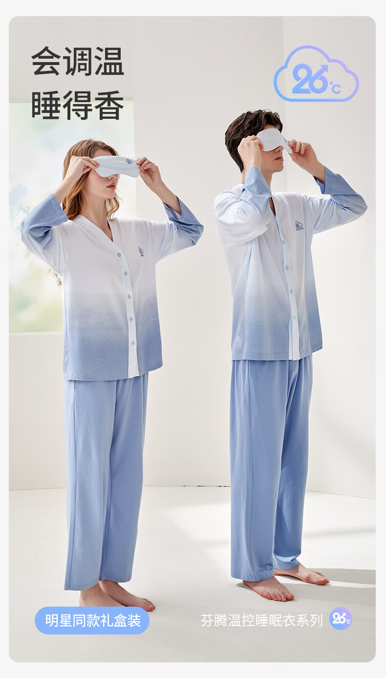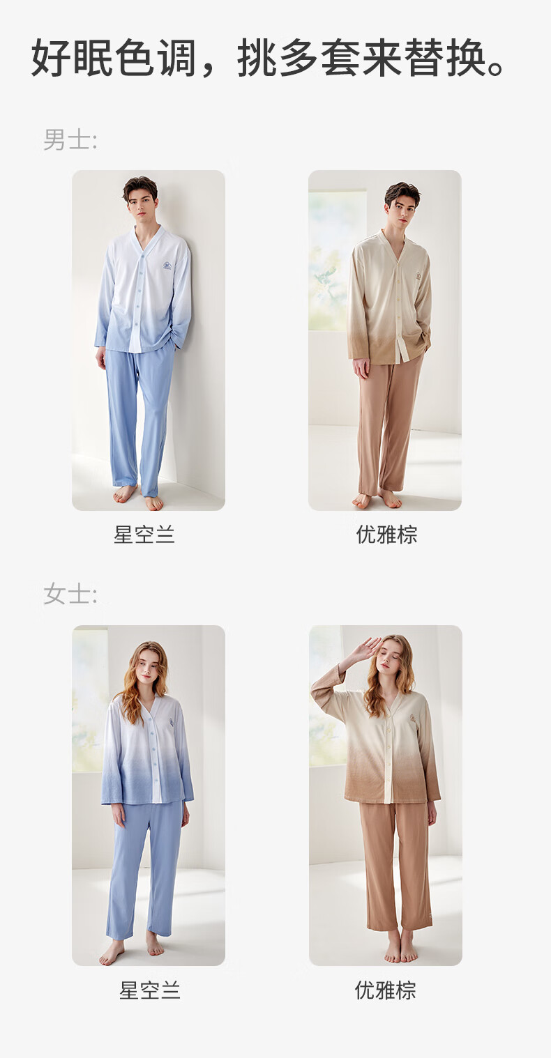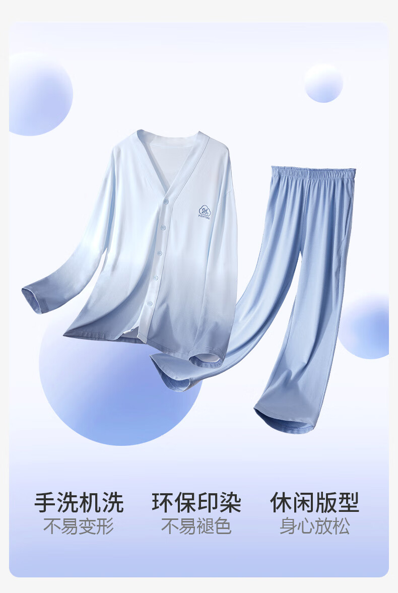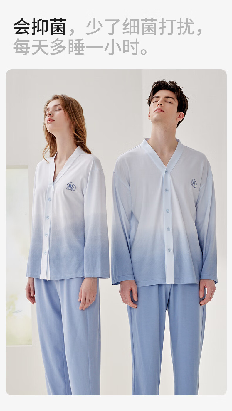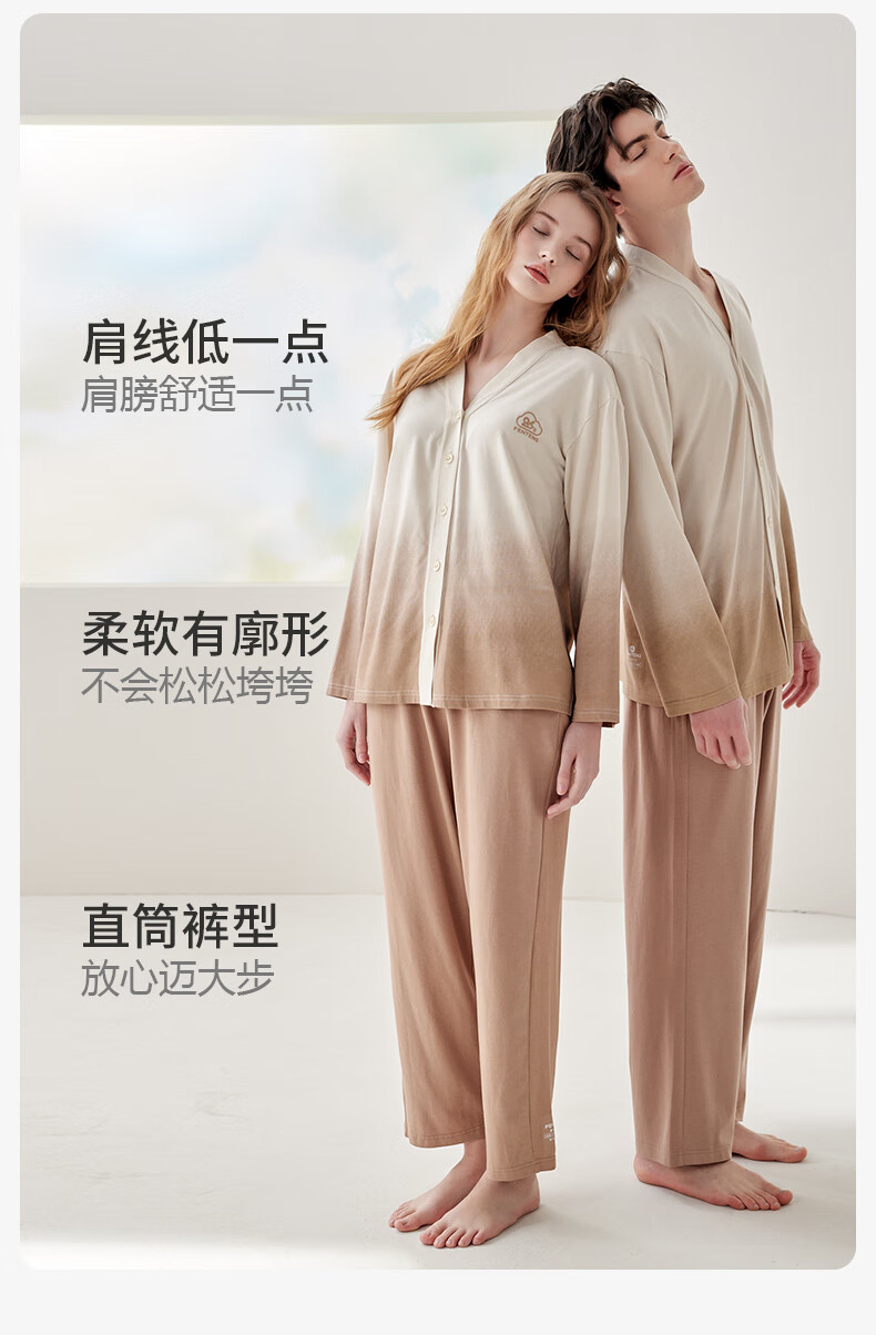 Fenton pajamas Fan Chengcheng's same style Star's same style V-neck long-sleeved cardigan antibacterial home wear set Elegant Brown-Men's XL