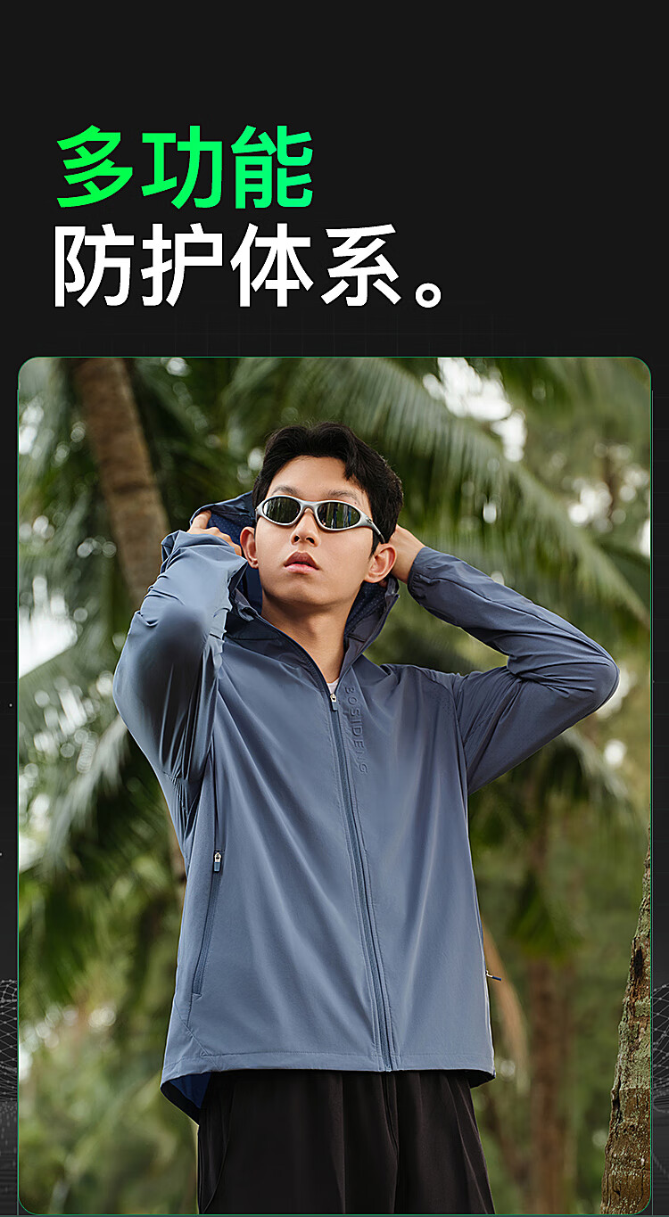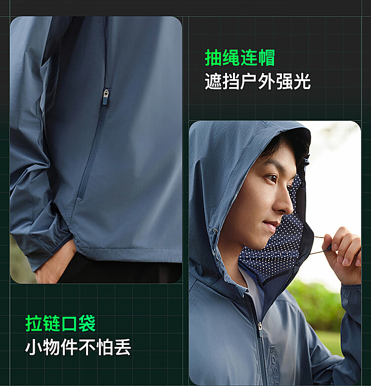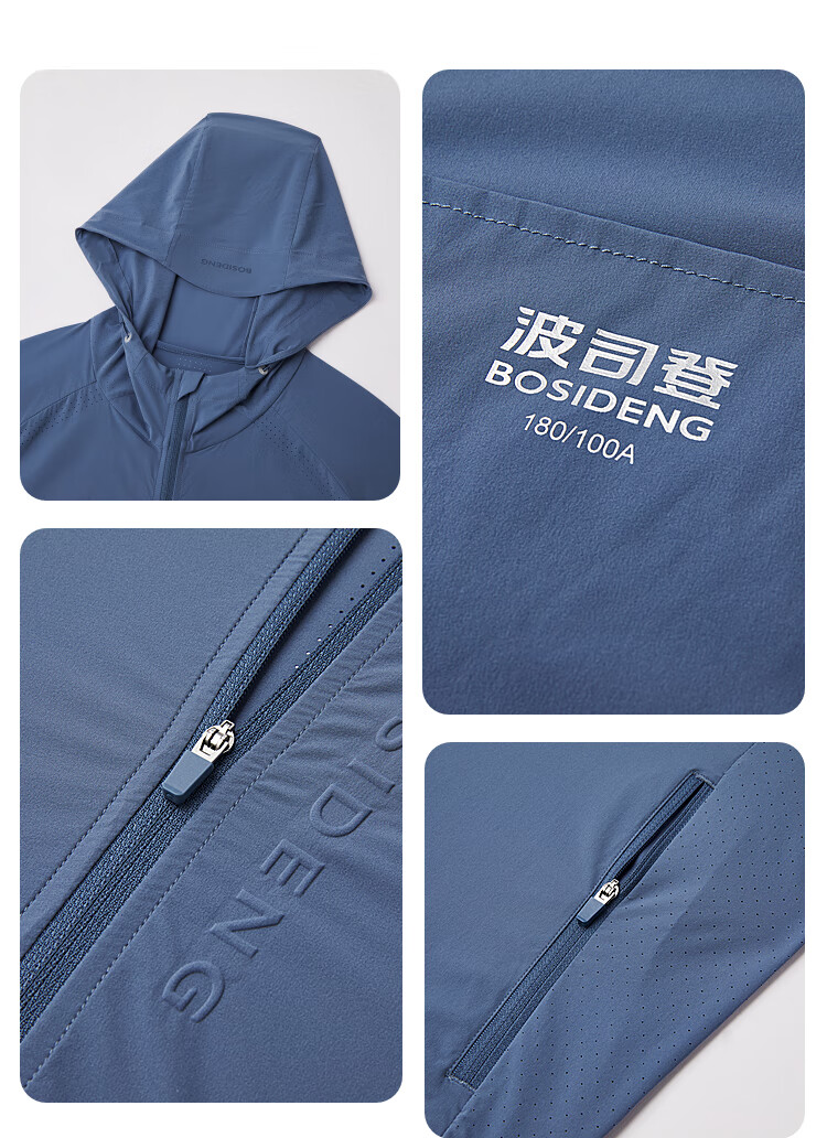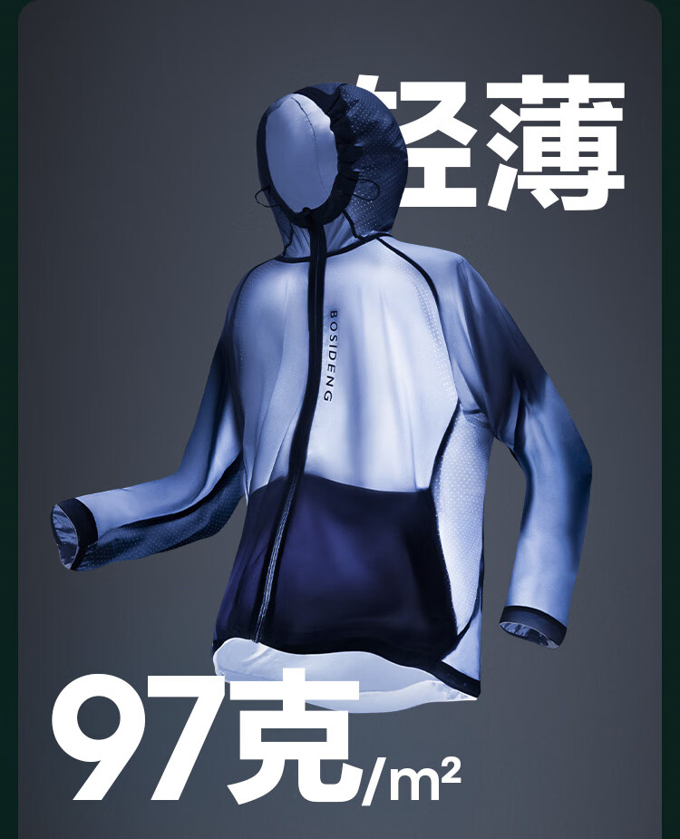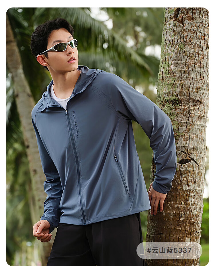 BOSIDENG National Standard Sun Protection Clothing Men's Ice Silk Cool Feel Double Breathable Anti-UV Outdoor Sports Fishing Wear Cycling Jacket Yunshan Blue 5337-Navigation Series S 170/92A