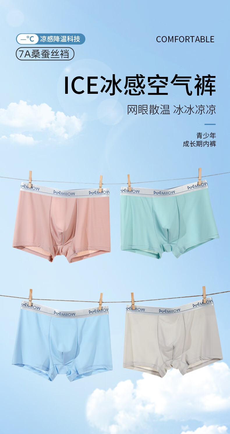 Catman youth underwear for children, middle and high school students, summer ice silk mesh development period 10A antibacterial crotch boxer briefs, ice silk mesh + 10A silk antibacterial, 4 pieces 165 (M) Recommended weight 70-90Jin Jin is equal to 0.5 kg
