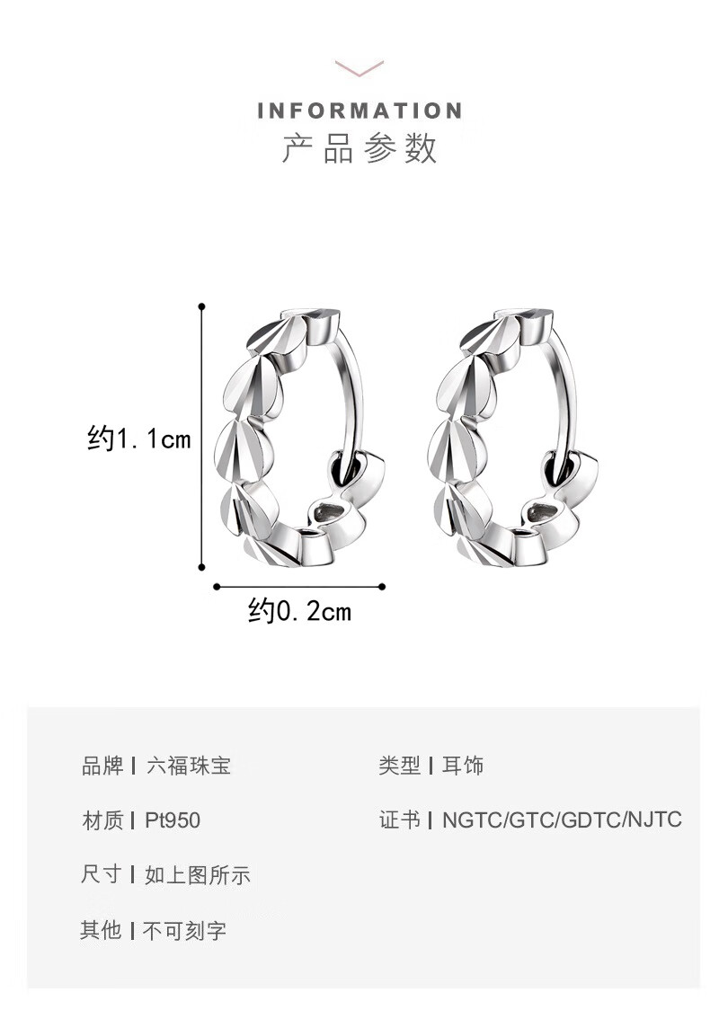 Lukfook Jewelry Platinum 950 Love Platinum Earrings Simple Earrings Price L04TBPE0008 2.66g (including labor cost 247 yuan)