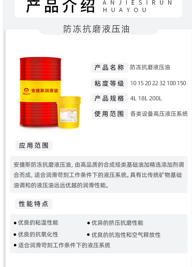 Angies antifreeze low temperature anti-wear hydraulic oil L-HV10#32#46#68 winter antifreeze low condensation machinery special lubricant antifreeze and antiwear hydraulic oil L-HV32 4L (-35 C)
