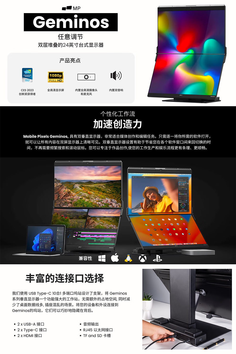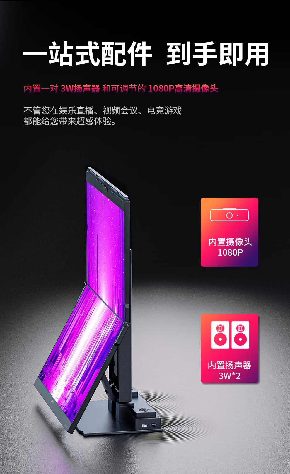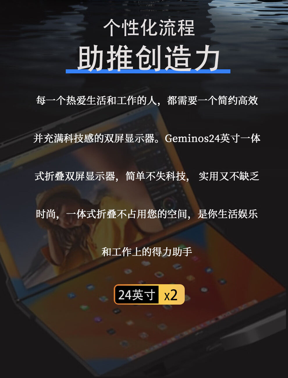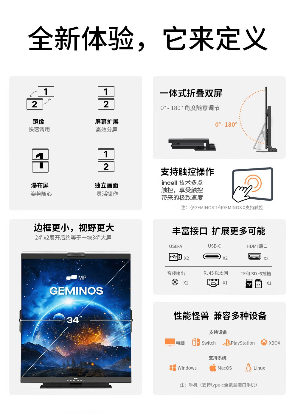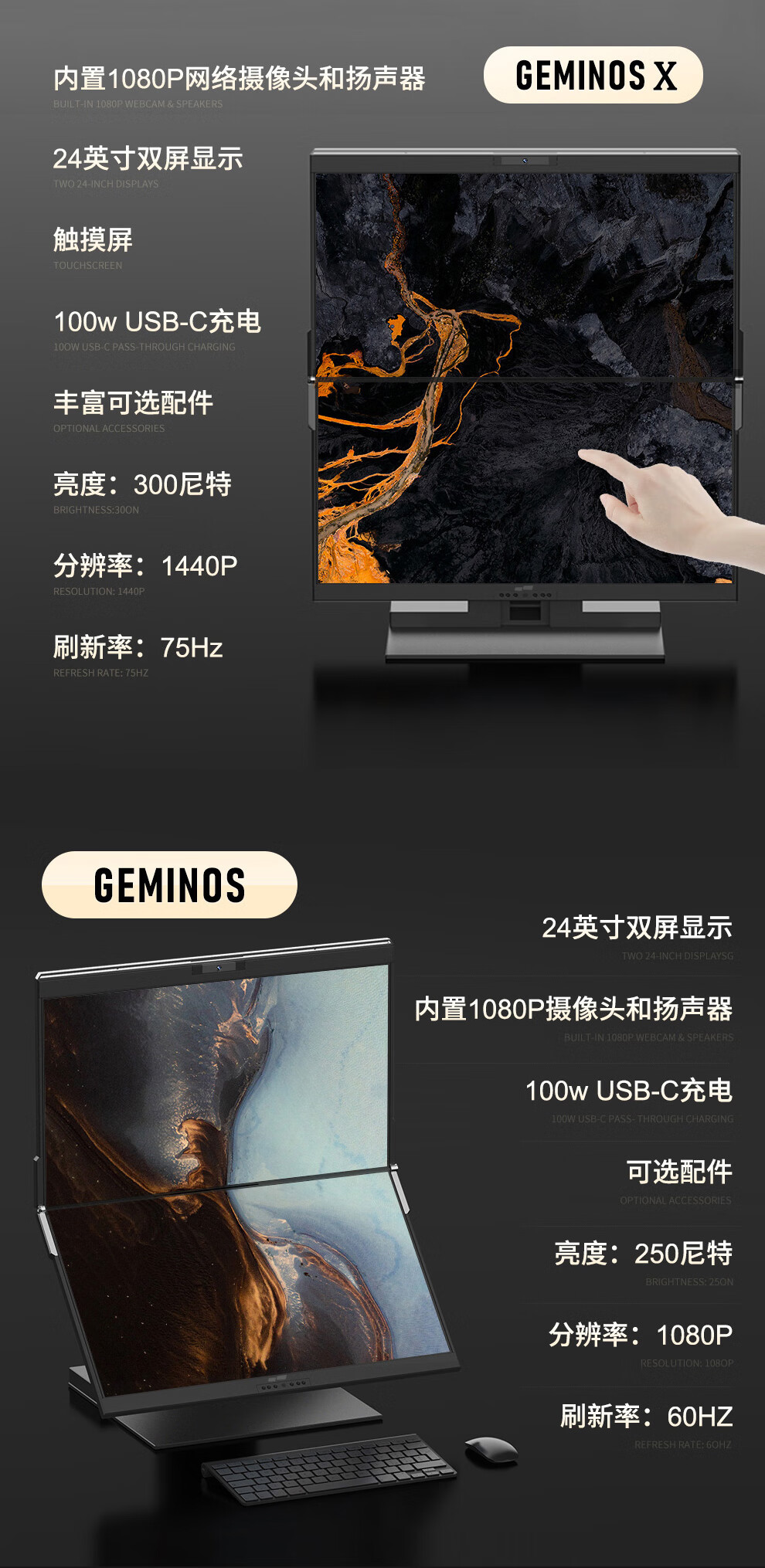DUEX dual-screen display Geminos 24-inch 2K foldable lifting LED screen expansion screen laptop expansion external desktop office stock trading secondary screen portable display flagship model GeminosX dual folding screen 2K screen touch screen