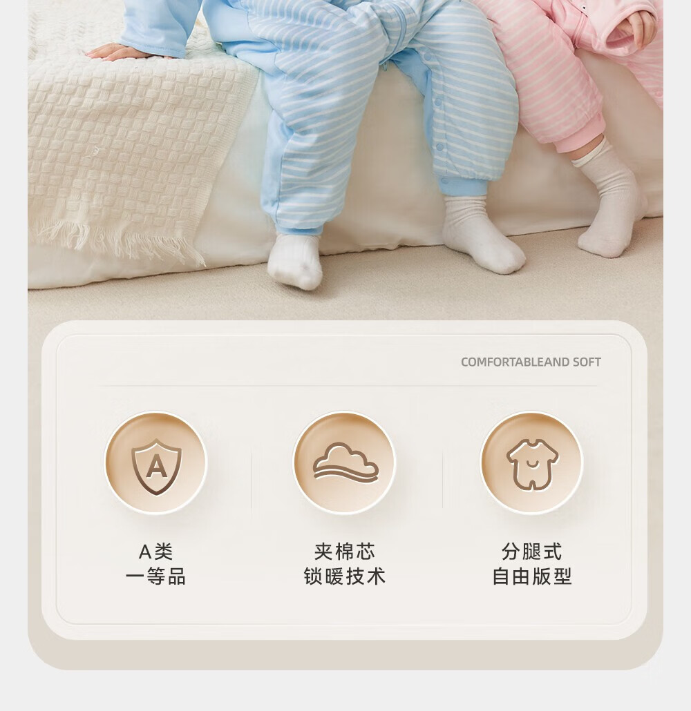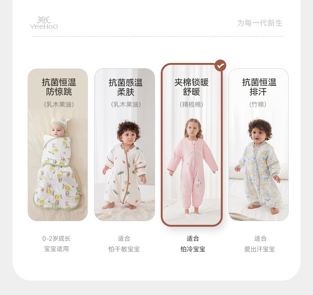 英氏(YEEHOO)婴儿睡袋小童分腿防踢被 两色可选 牧场蓝 建议14-18℃ 85*36cm(推荐身高90-100cm)