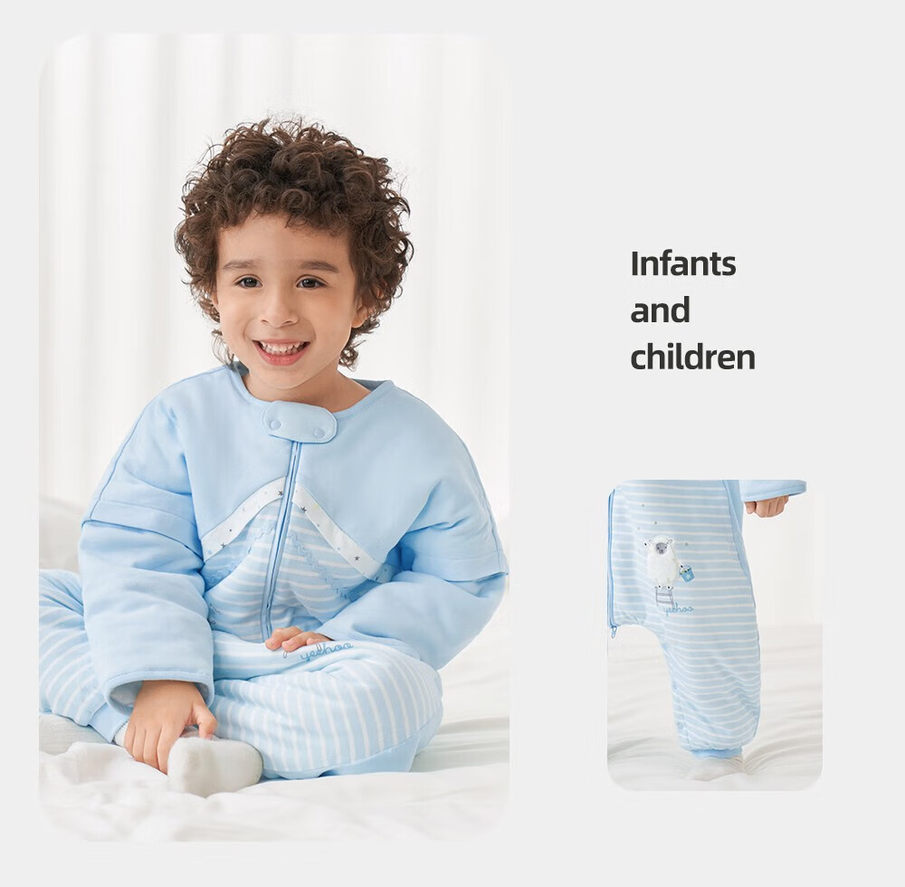 英氏(YEEHOO)婴儿睡袋小童分腿防踢被 两色可选  牧场蓝 建议14-18℃ 85*36cm(推荐身高90-100cm)