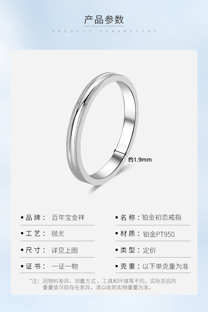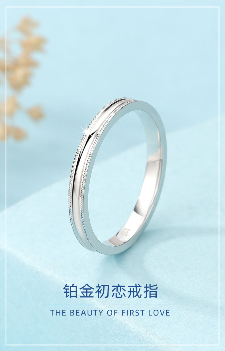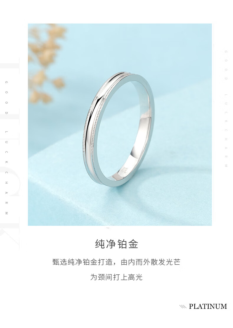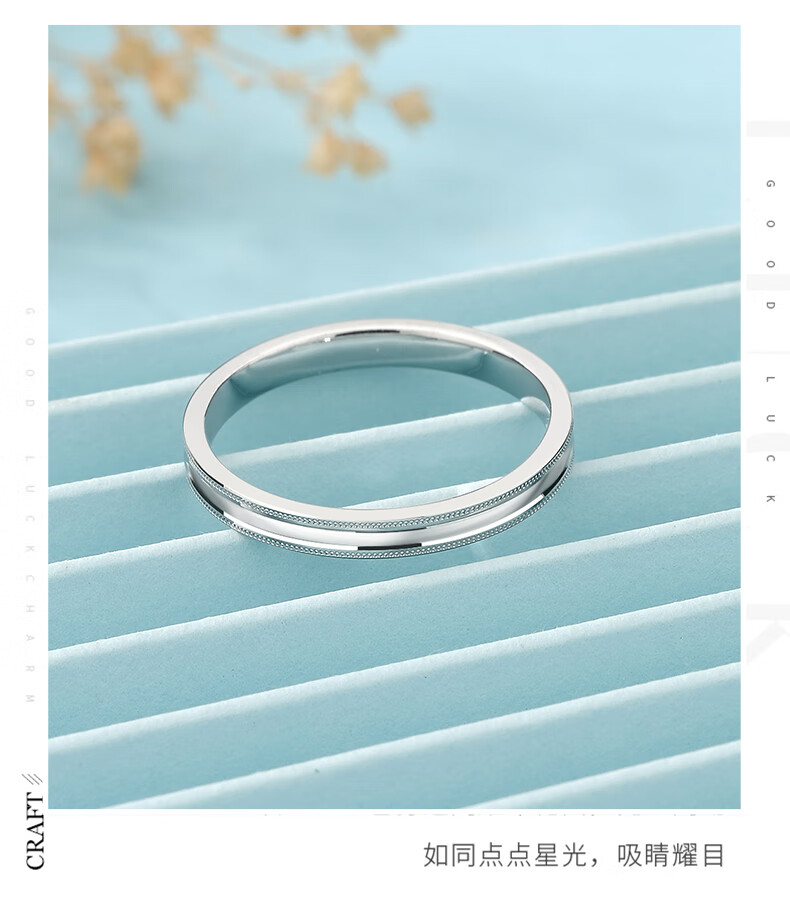 Centenary Baojinxiang pt950 platinum ring women's ring ring tail ring can be stacked with diamond ring fashion new wedding ring No. 9 first love ring 2.4-2.5 grams