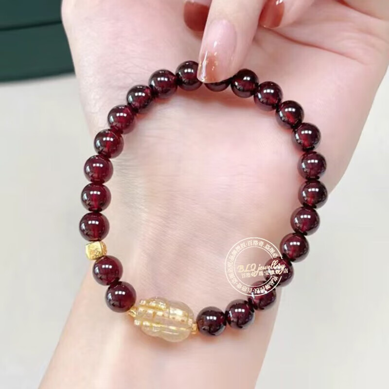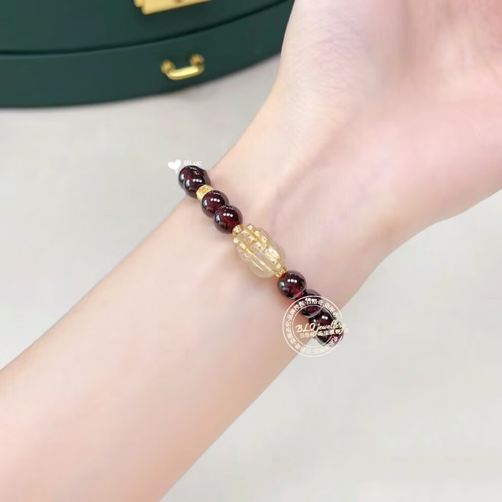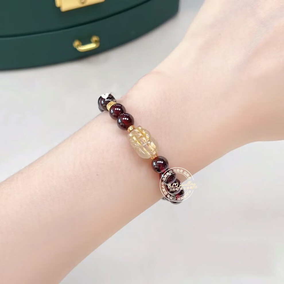 Bailuoqi Wine Red Garnet Bracelet Single Circle Buddha Beads Jewelry Blonde Crystal Pixiu Crystal Zodiac Year Bracelet Garnet 8mm