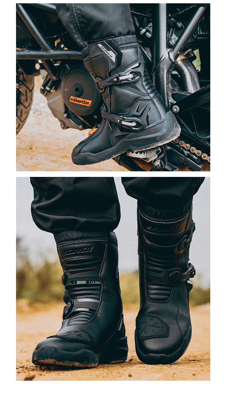 Saiyu Motorcycle Rally Waterproof and Breathable Cycling Shoes Anti-fall and Wear-Resistant Rally Cycling Boots All-Season Men's Motorcycle Boots Black 42