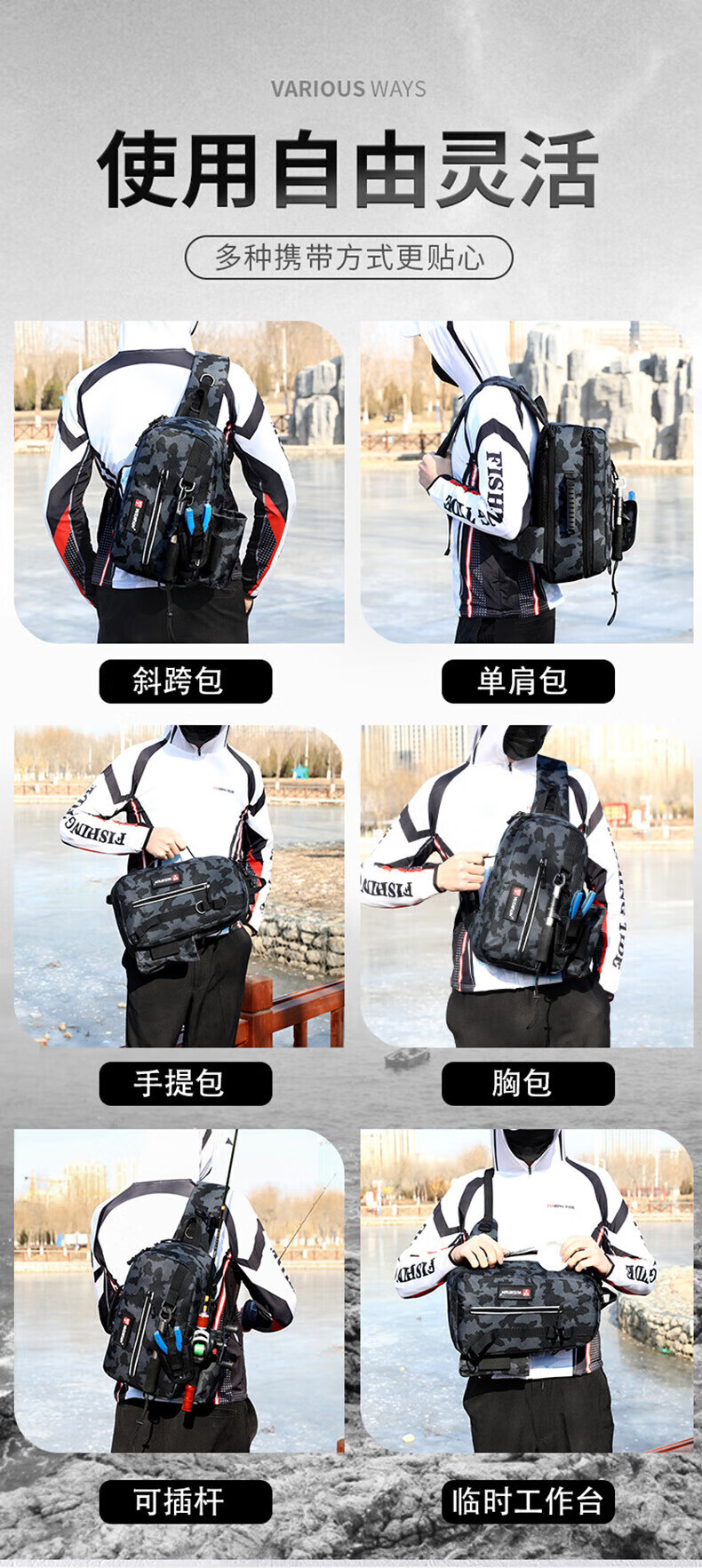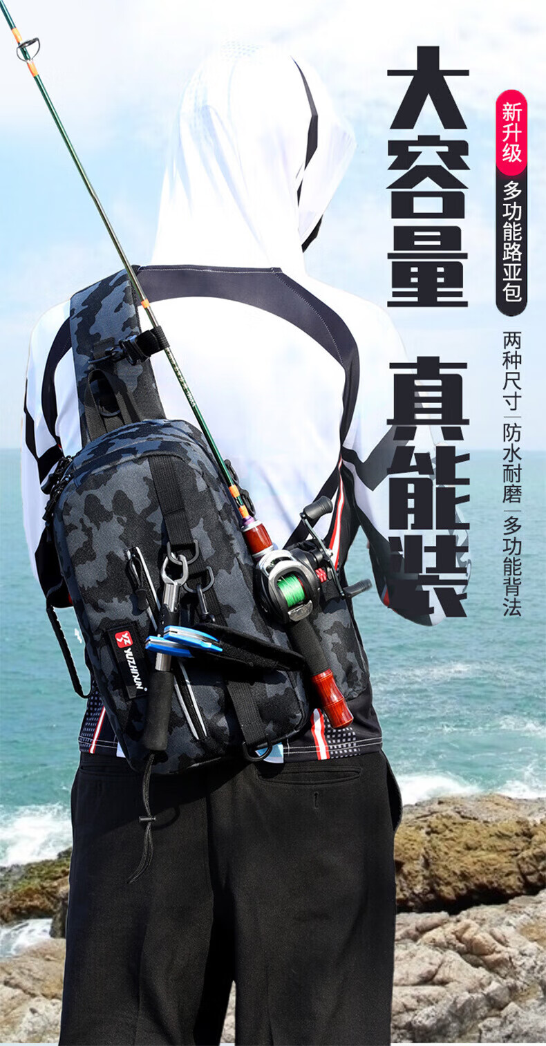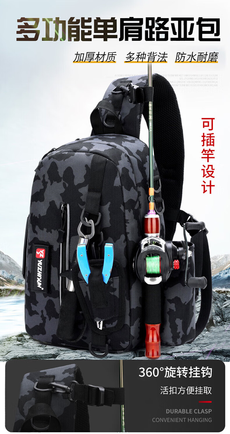 Hevadallua bag, multifunctional pole-mounted lure waist bag, shoulder bag, rod bag, fishing rod bag, large capacity, waterproof, black camouflage, large capacity/various carrying methods/waterproof