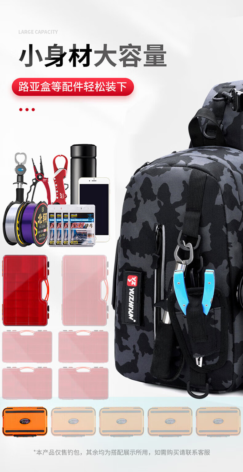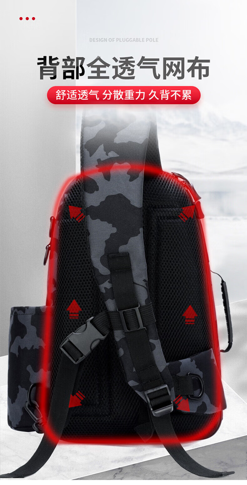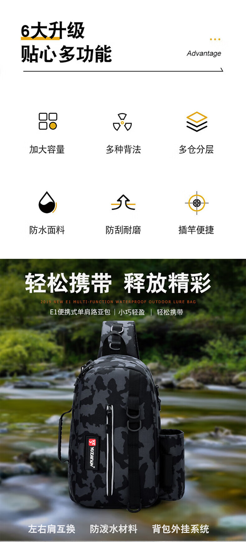 Hevadallua bag, multifunctional pole-mounted lure waist bag, shoulder bag, rod bag, fishing rod bag, large capacity, waterproof, black camouflage, large capacity/various carrying methods/waterproof