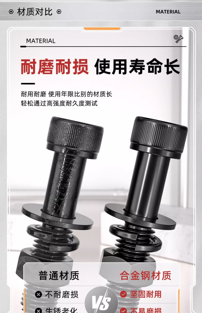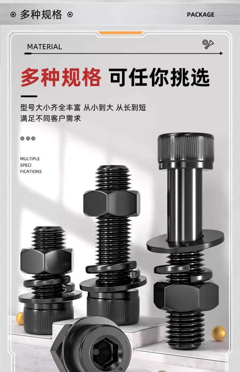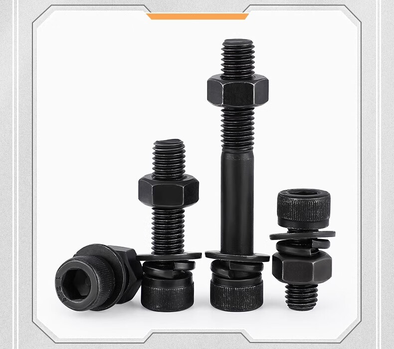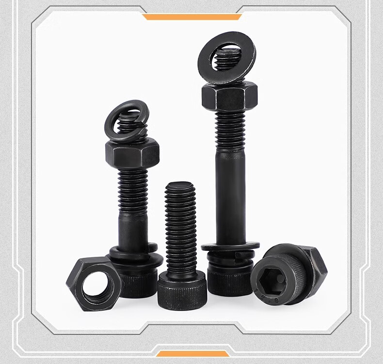 Fengji 12.9-level high-strength cup head hexagonal screw and nut combination set complete bolt flat spring washer M8-M20 M3*18-50 set