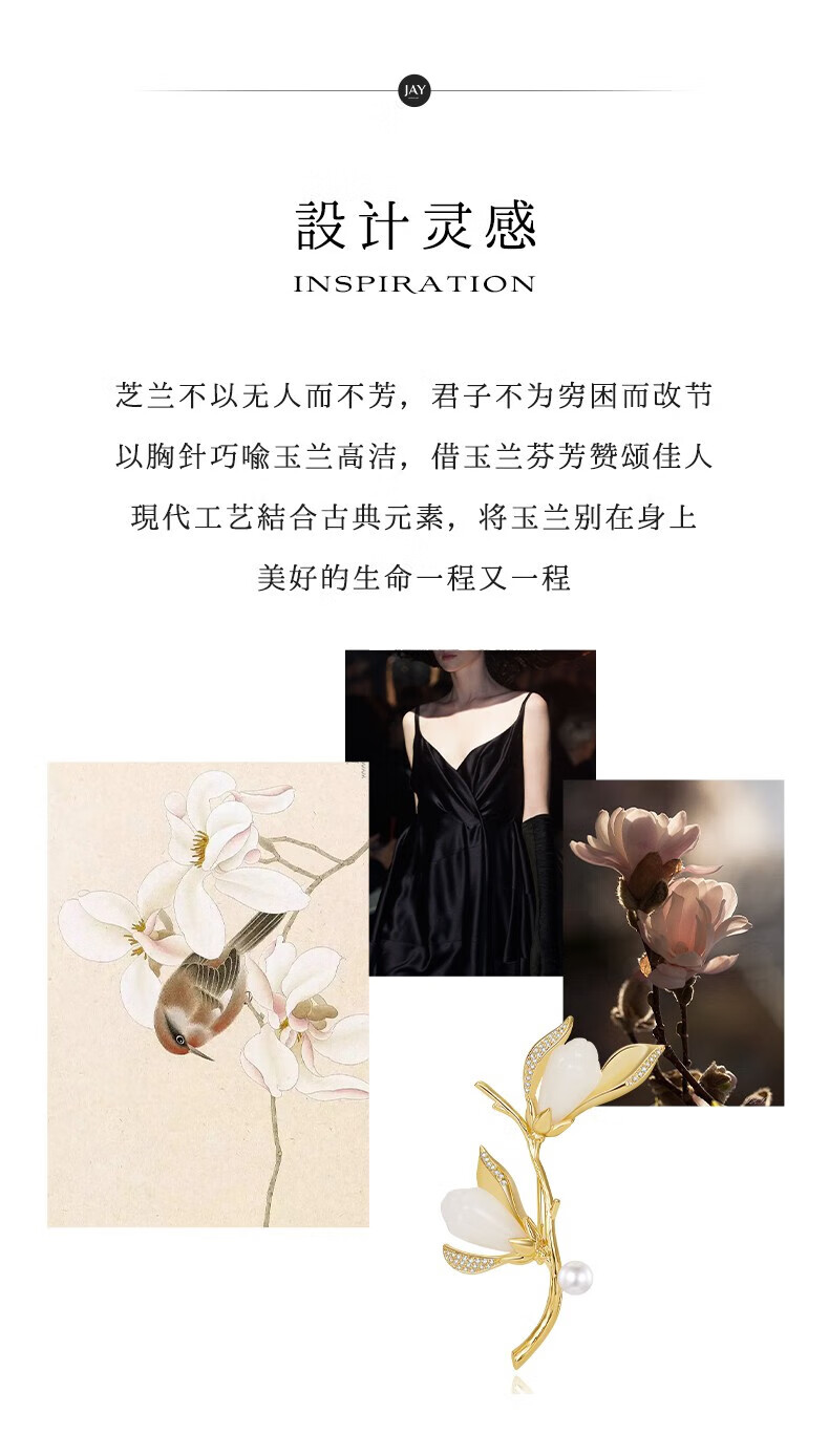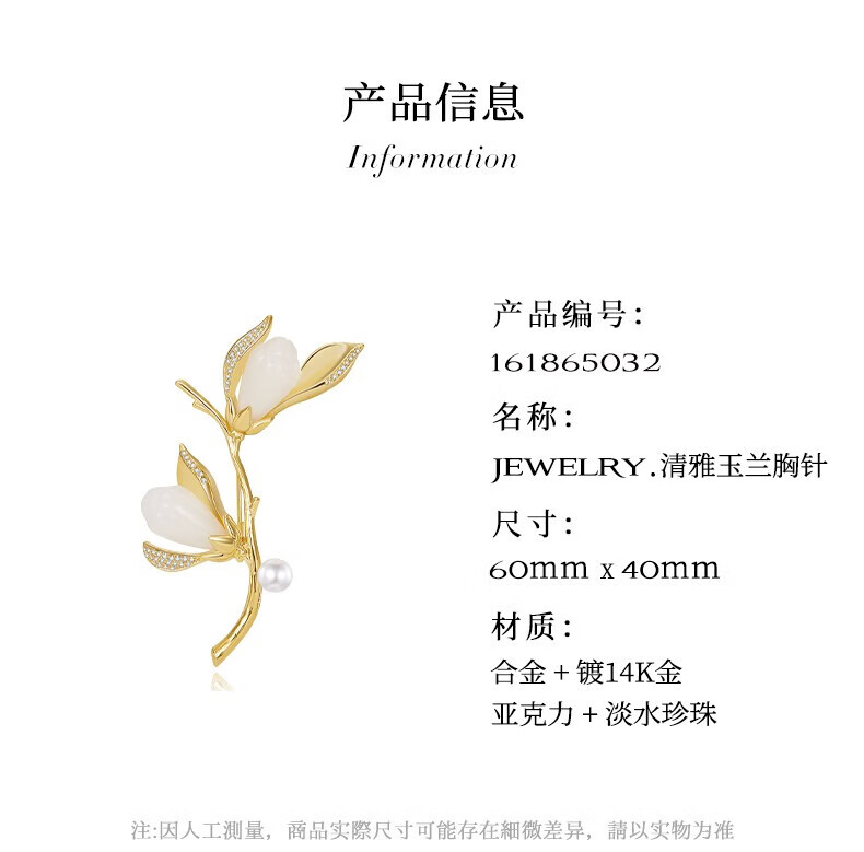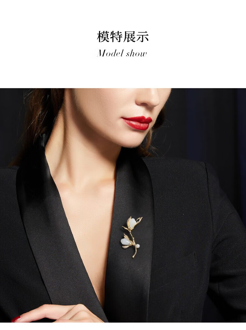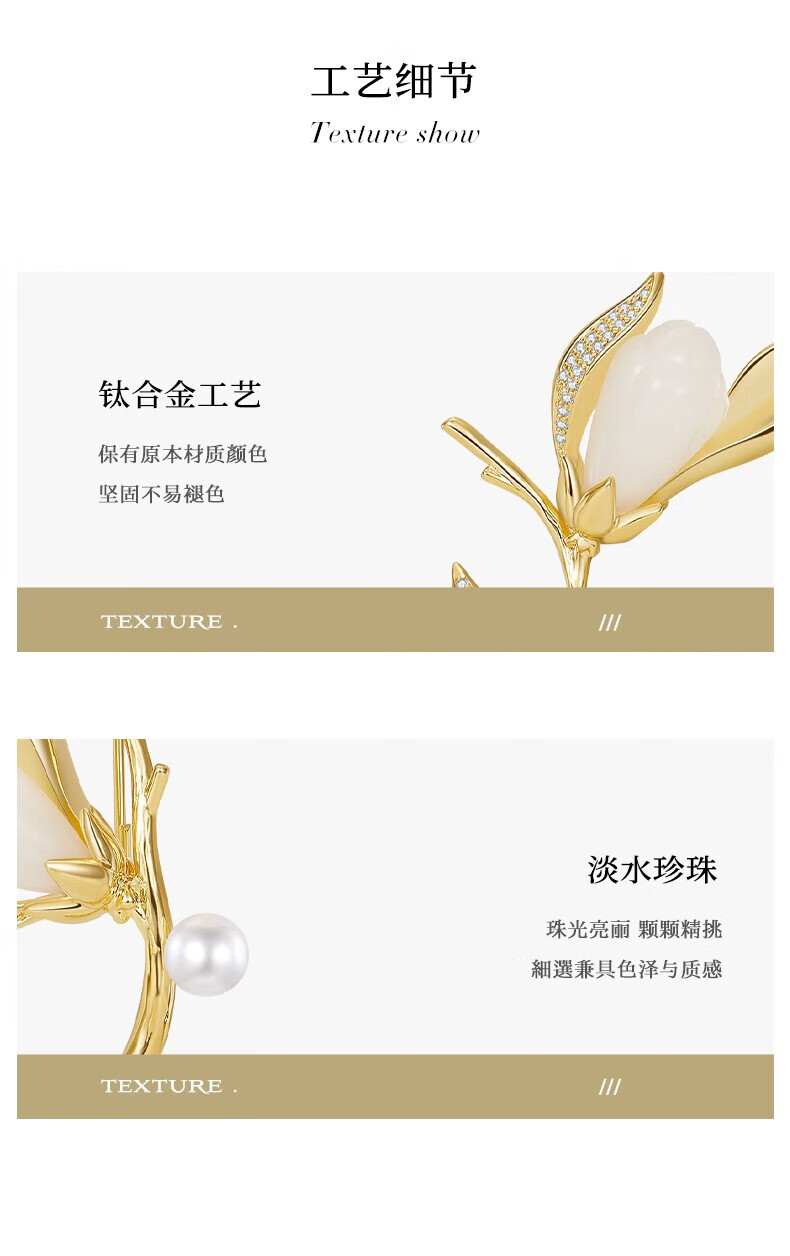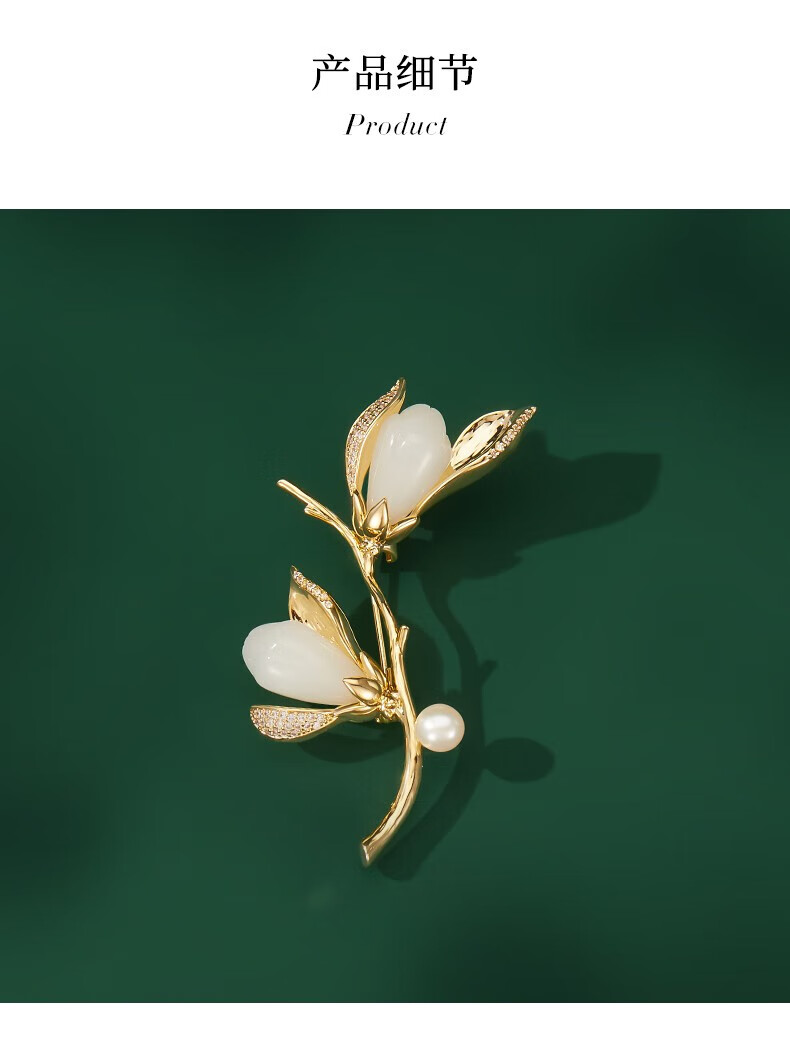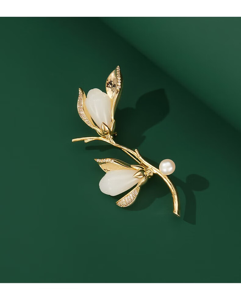 Jay pearl brooch, high-end female corsage, Mother's Day gift for mother-in-law and elders, birthday gift, golden magnolia brooch