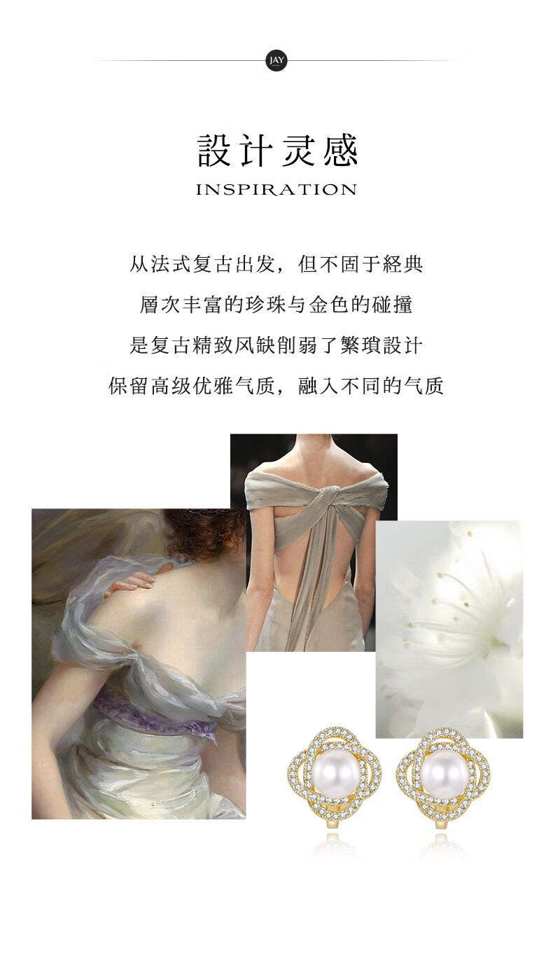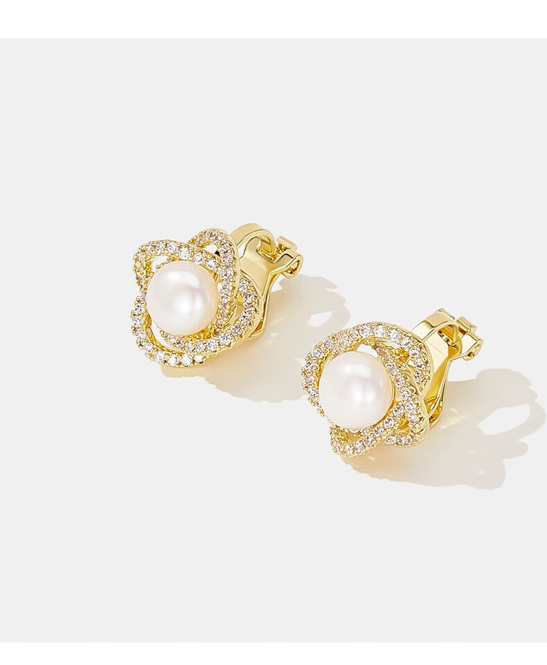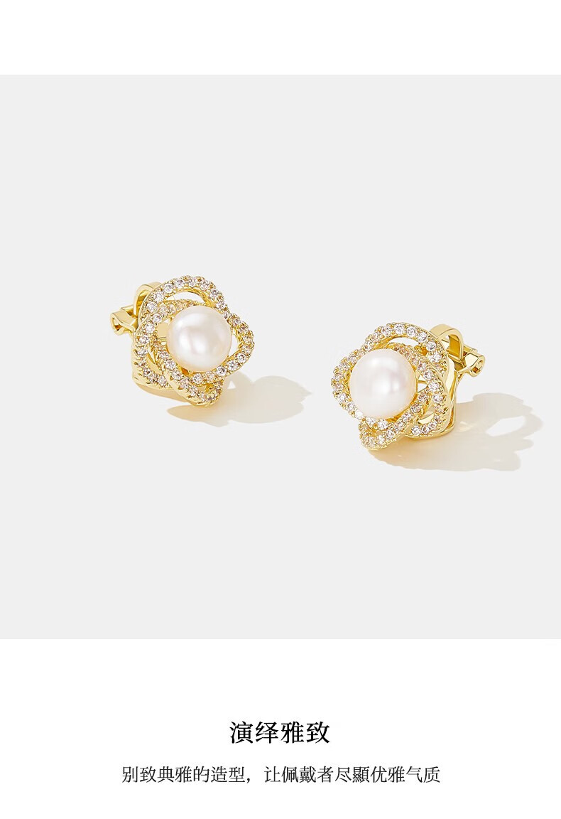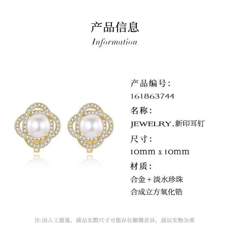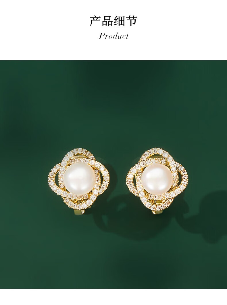 Jay four-leaf clover pearl earrings without piercing, female clip-on earrings and earrings as birthday gifts for girlfriends. Ear clips (freshwater pearls) Beijing warehouse/shipped nearby