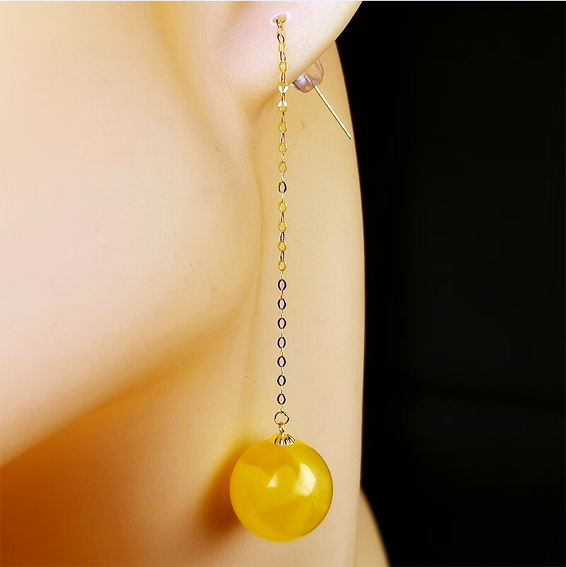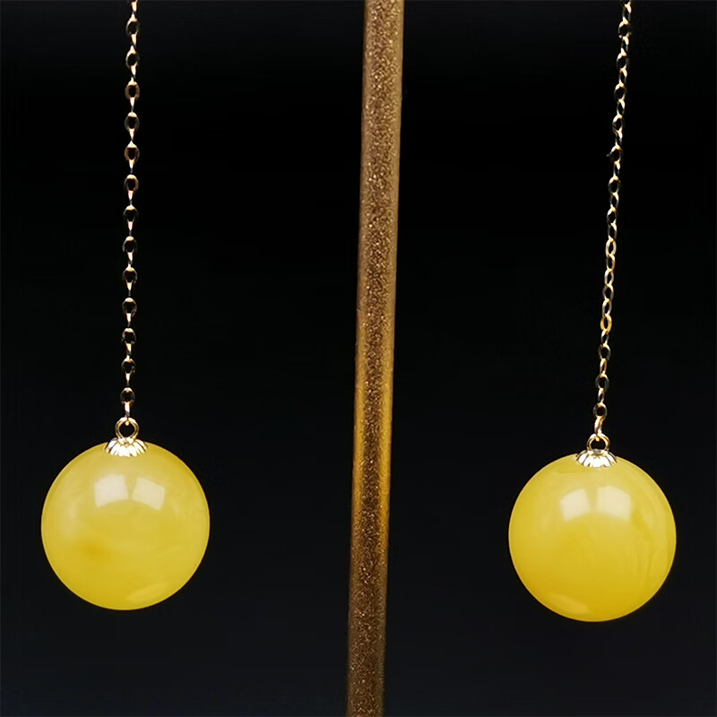 Amber School, one thing, one picture, one proof, beeswax earrings, amber jewelry, 18K gold gold earrings for women, natural unbaked color, beeswax earrings, 2.43g, 12.5mm